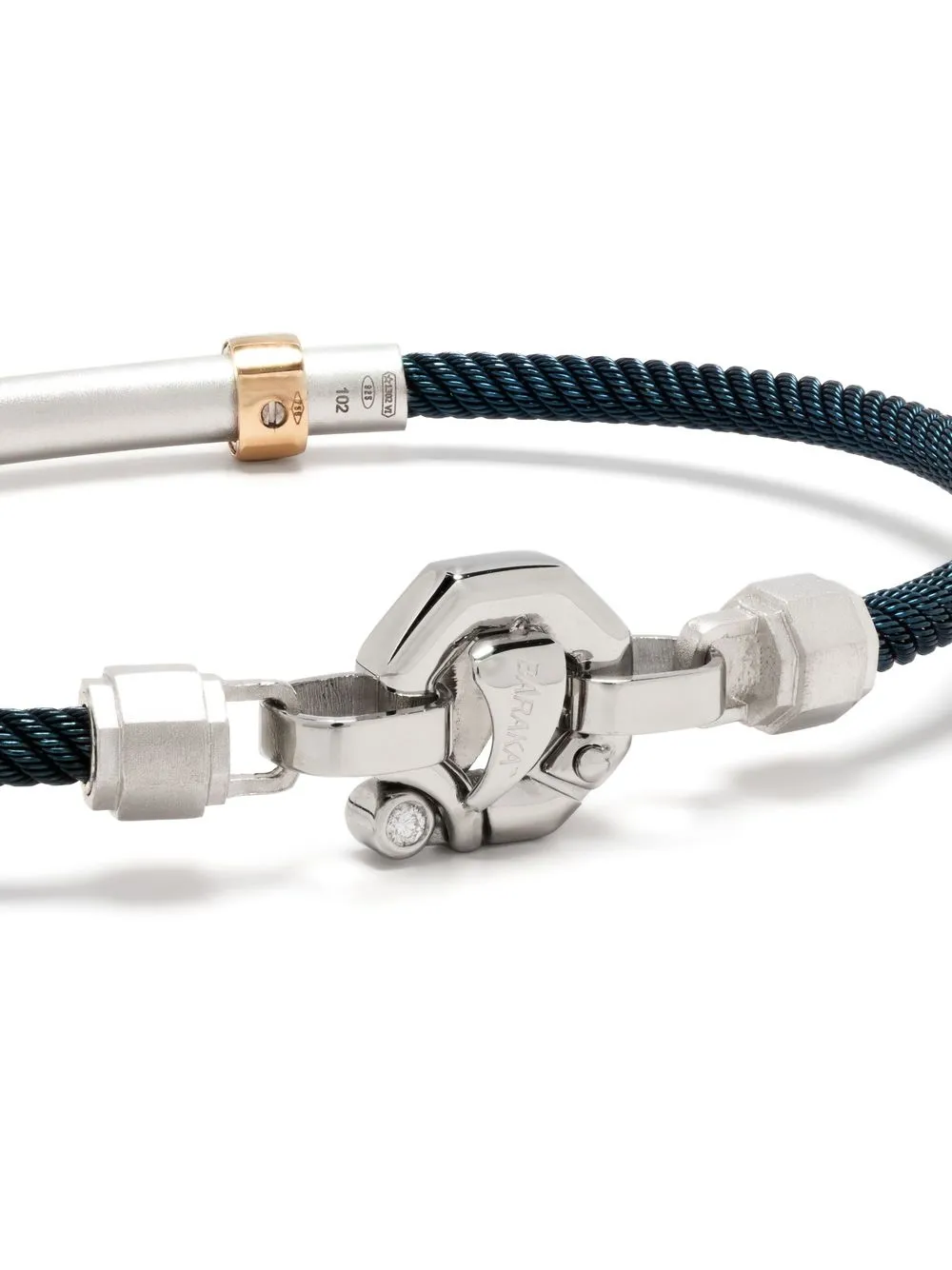 Черный, серебристый, 18-каратное розовое золото, белый бриллиант, черный бриллиант, нержавеющая сталь, выгравированный логотип, цепь кордового плетения, бриллианты огранки «круг» и застежка на зажиме.