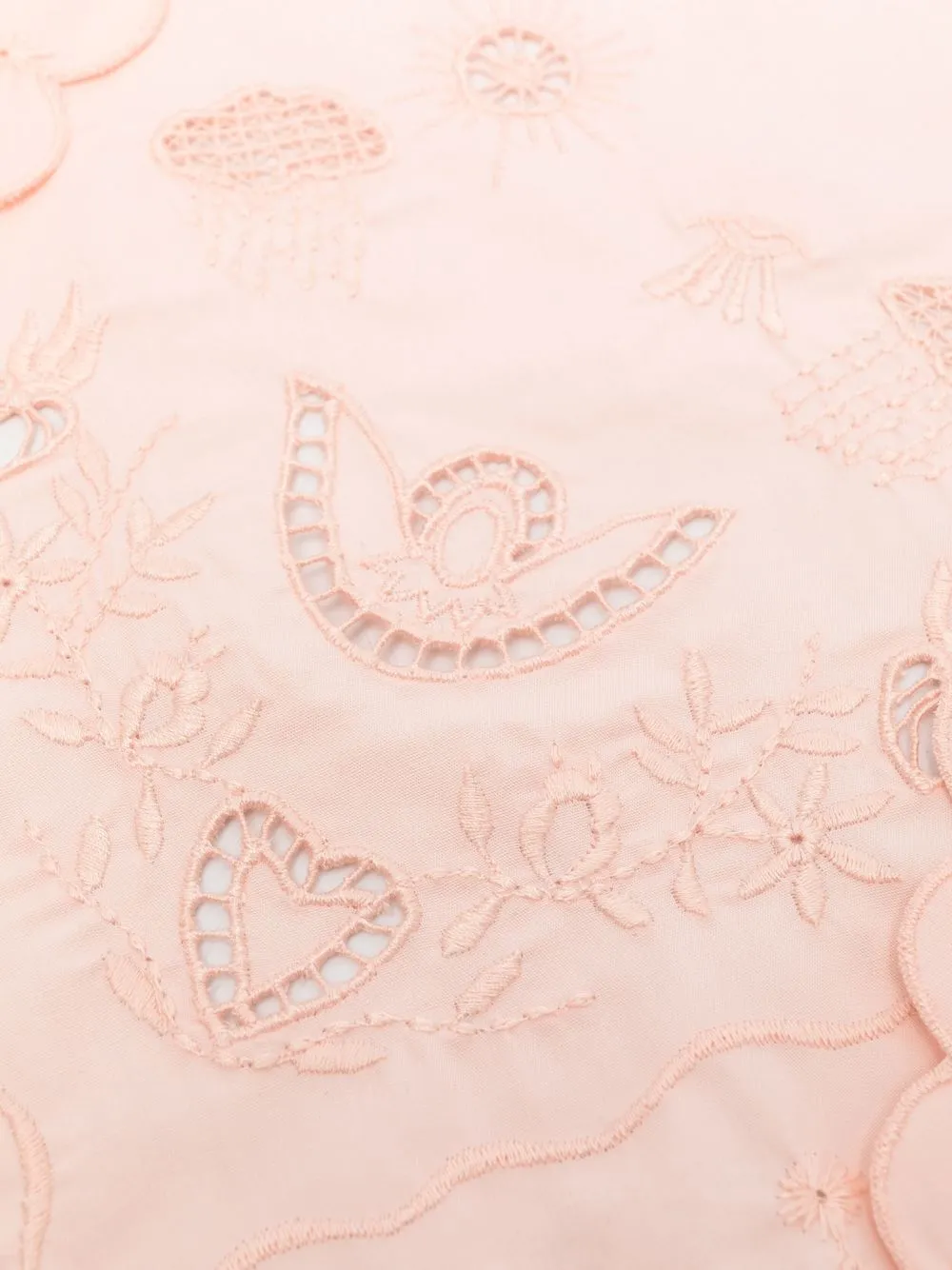 Светло-розовый, хлопок, без эффекта утяжеления, цветочная вышивка, английская вышивка и края с фестонами.