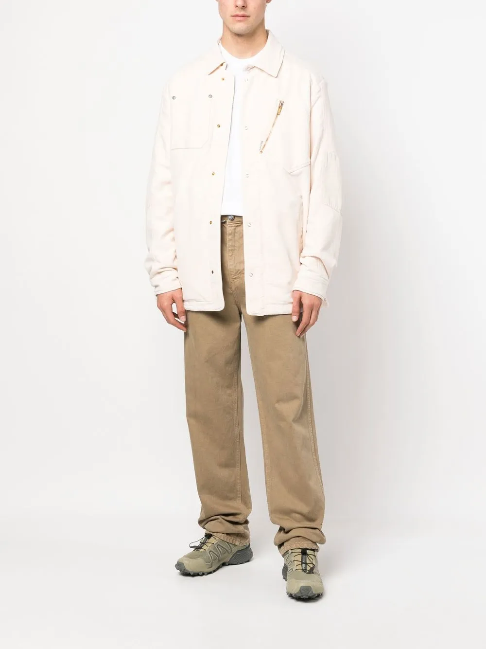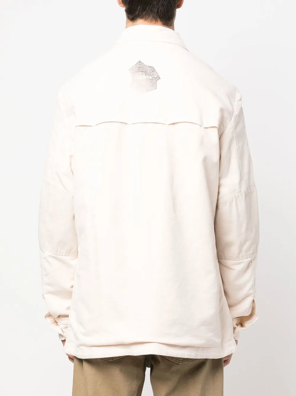 Светло-розовый, стрейчевый органический хлопок, нашивка с логотипом сзади, два нагрудных кармана на молнии, нагрудный накладной карман, два прорезных кармана сбоку, заплатки на локтях, классический воротник, застежка на кнопках спереди, длинные рукава и закругленный подол. Ответственный выбор: