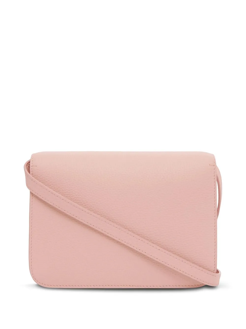 Расцветка Blush Pink, телячья кожа, откидной клапан, регулируемые лямки, внутренний карман на молнии, зернистая текстура, золотистая фурнитура и основное отделение.