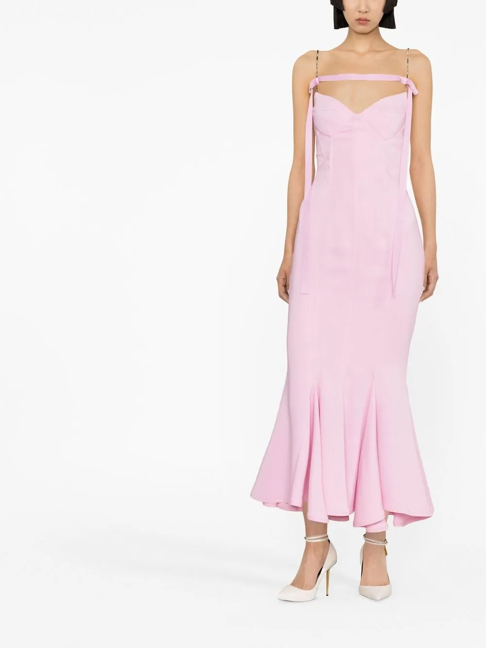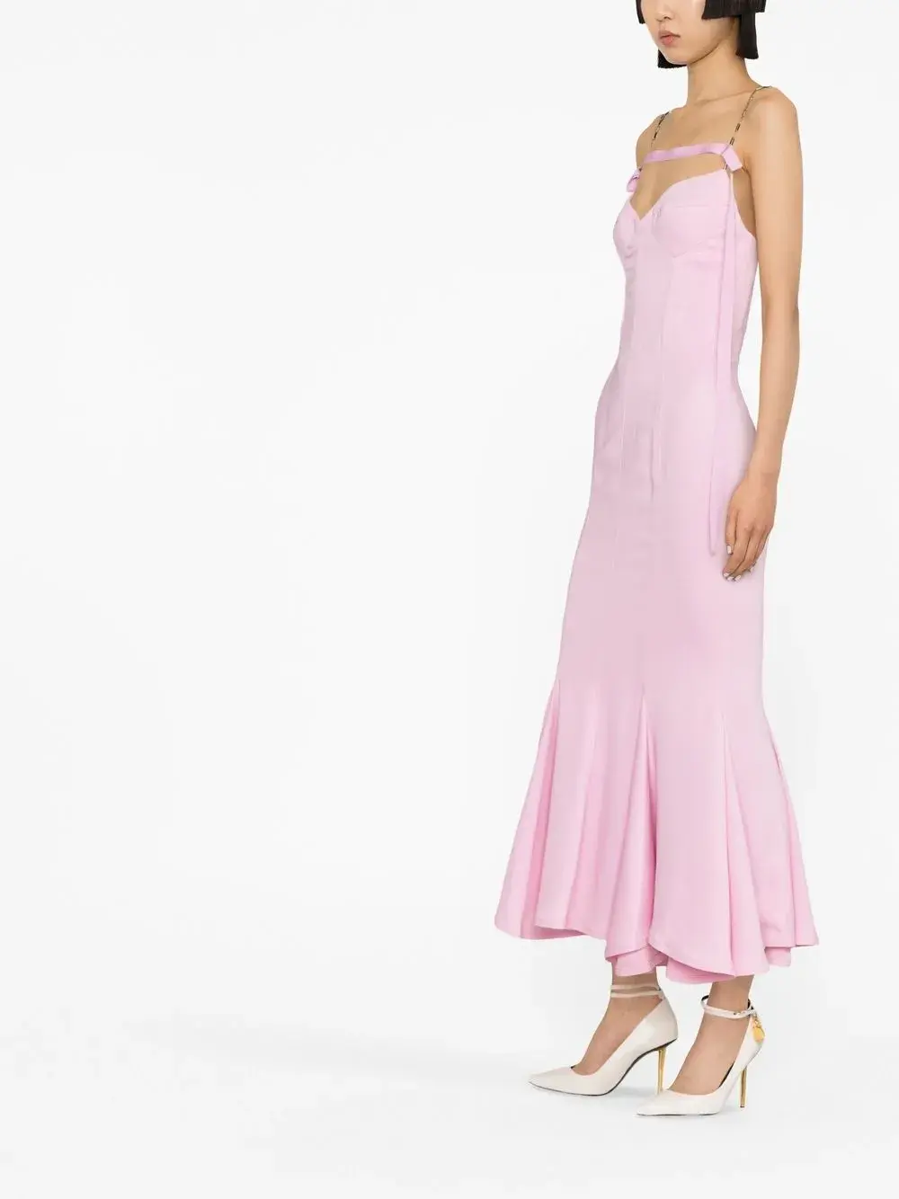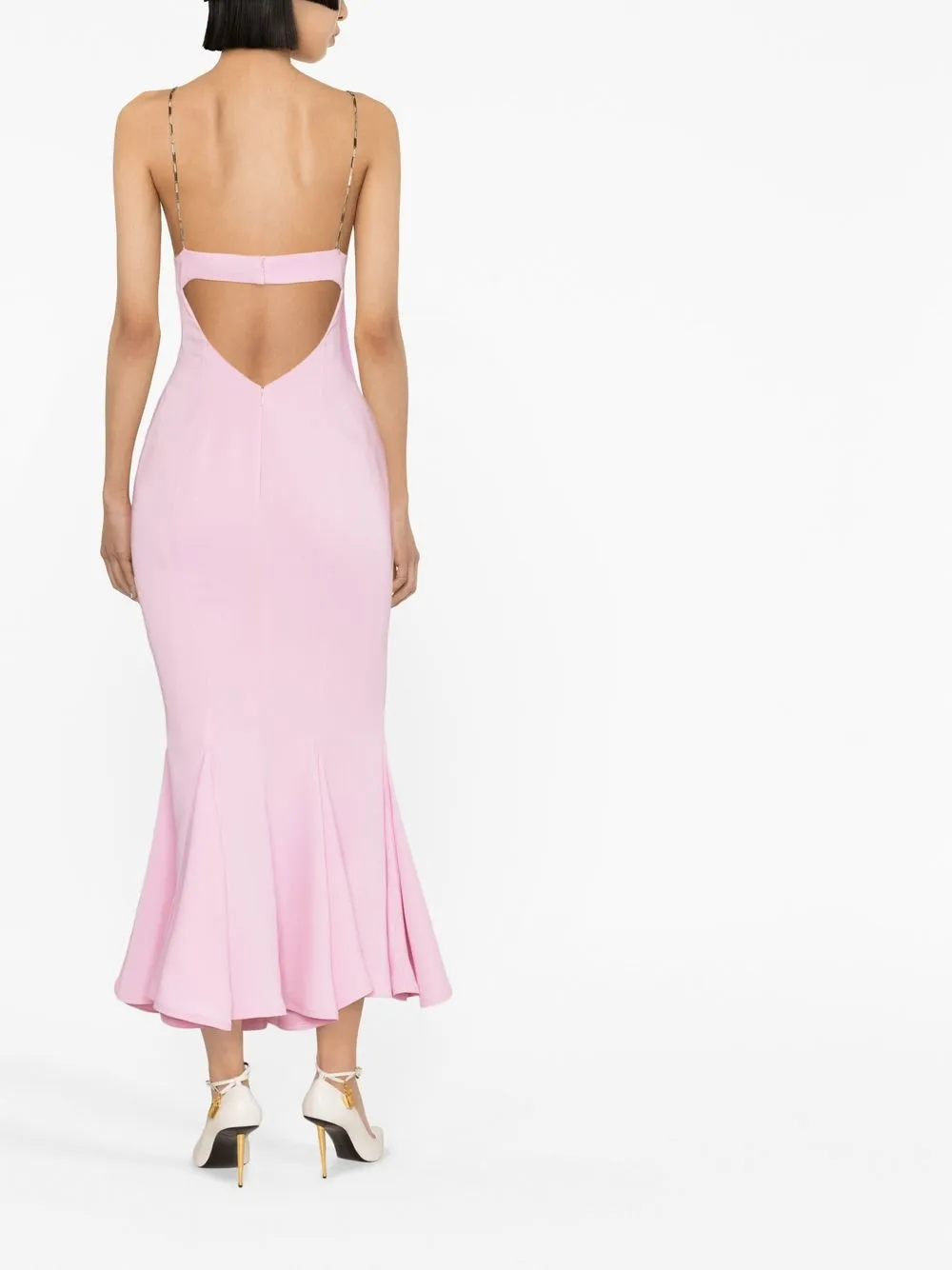 Вырезные детали, тонкие бретели и подол фиштейл.
