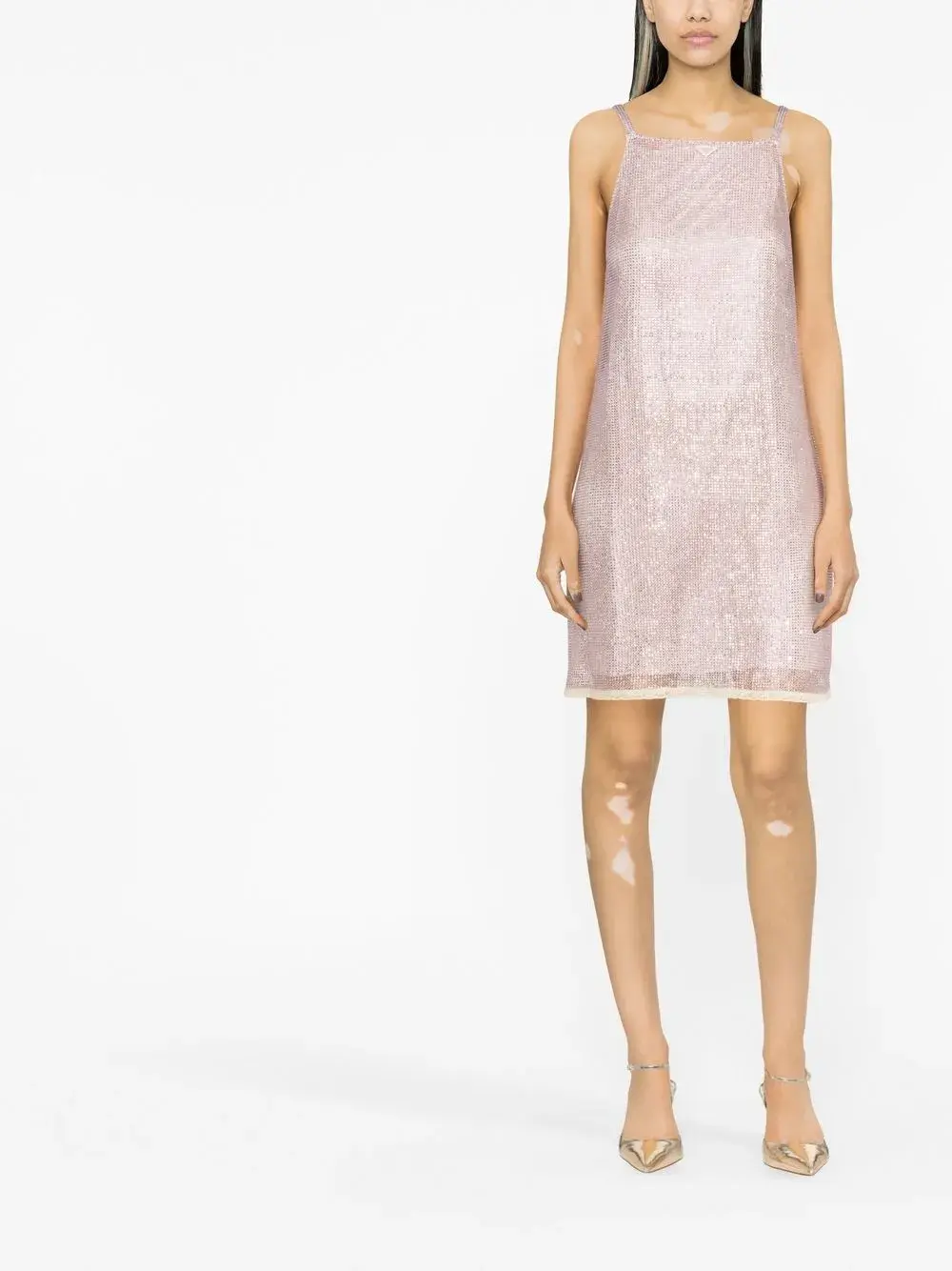 Сетчатое платье мини со стразами Prada, розовый 683 844₽