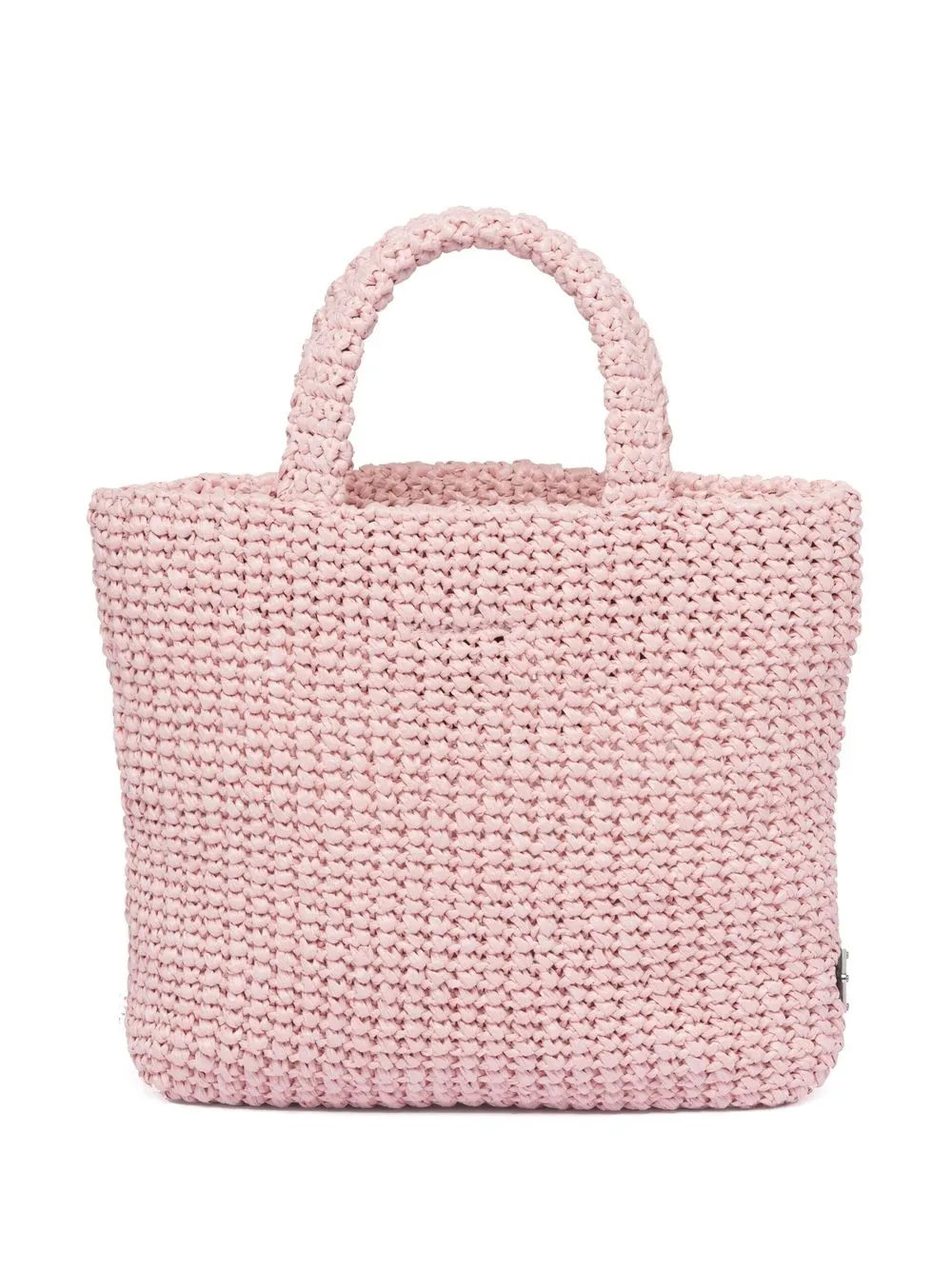 Светло-розовый, черный, рафия, переплетенный дизайн и круглые ручки.
