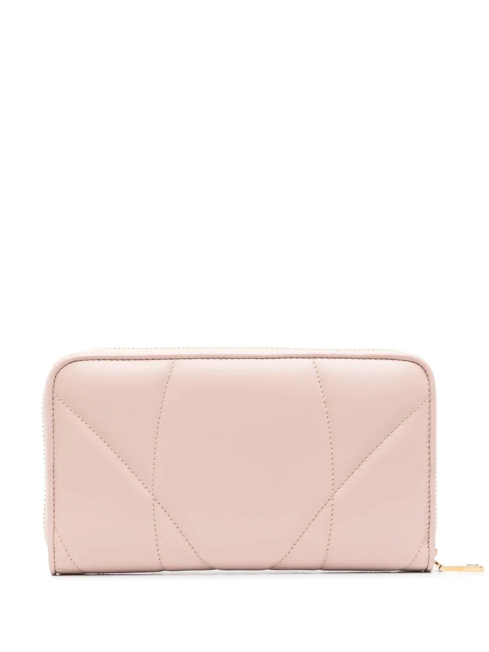 Светло-розовый, овечья кожа, золотистый металлический логотип, стеганая модель, золотистая фурнитура, застежка на молнии сверху, несколько отделений, внутренние отделения для карт, внутренний карман на молнии и отделение для купюр.