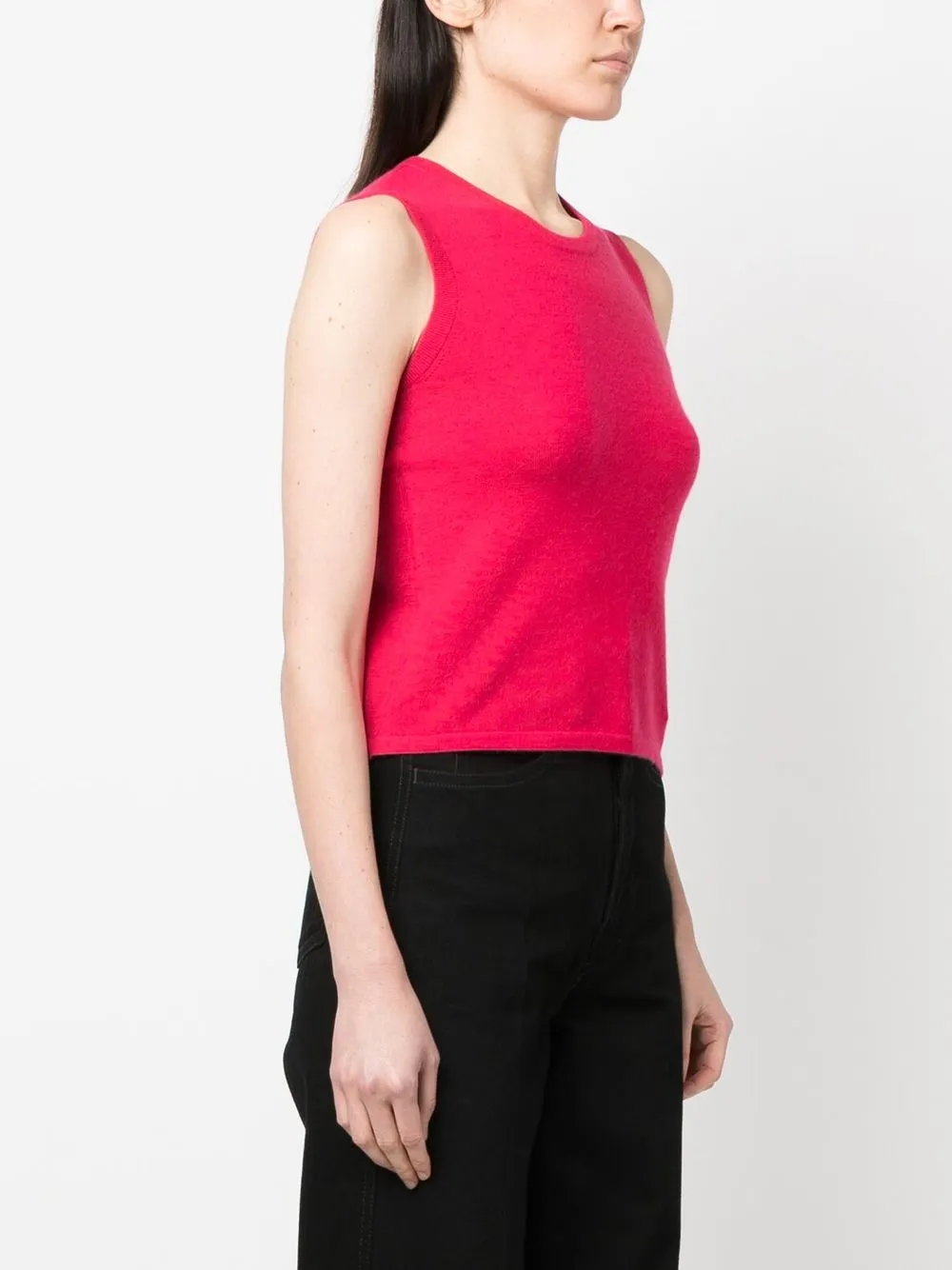 Малиновый, эластичный материал, смесовый кашемир, отделка в рубчик, круглый вырез, без рукавов и прямой подол.