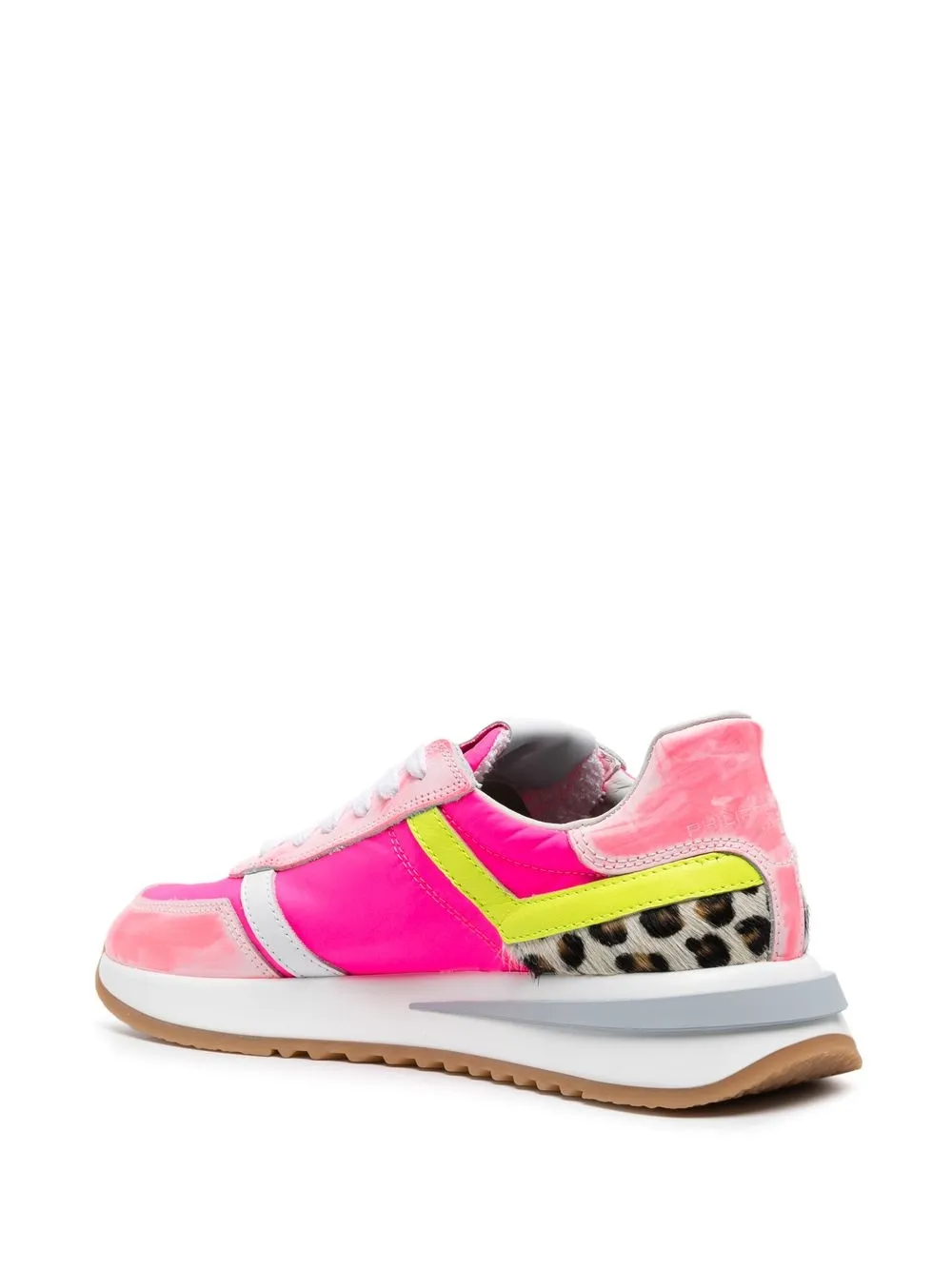 Розовый, разноцветный, телячья кожа, нашивка с логотипом сбоку, анималистичный принт, шнуровка спереди, закругленный носок, нашивка с логотипом на язычке, стелька с логотипом и плоская резиновая подошва.