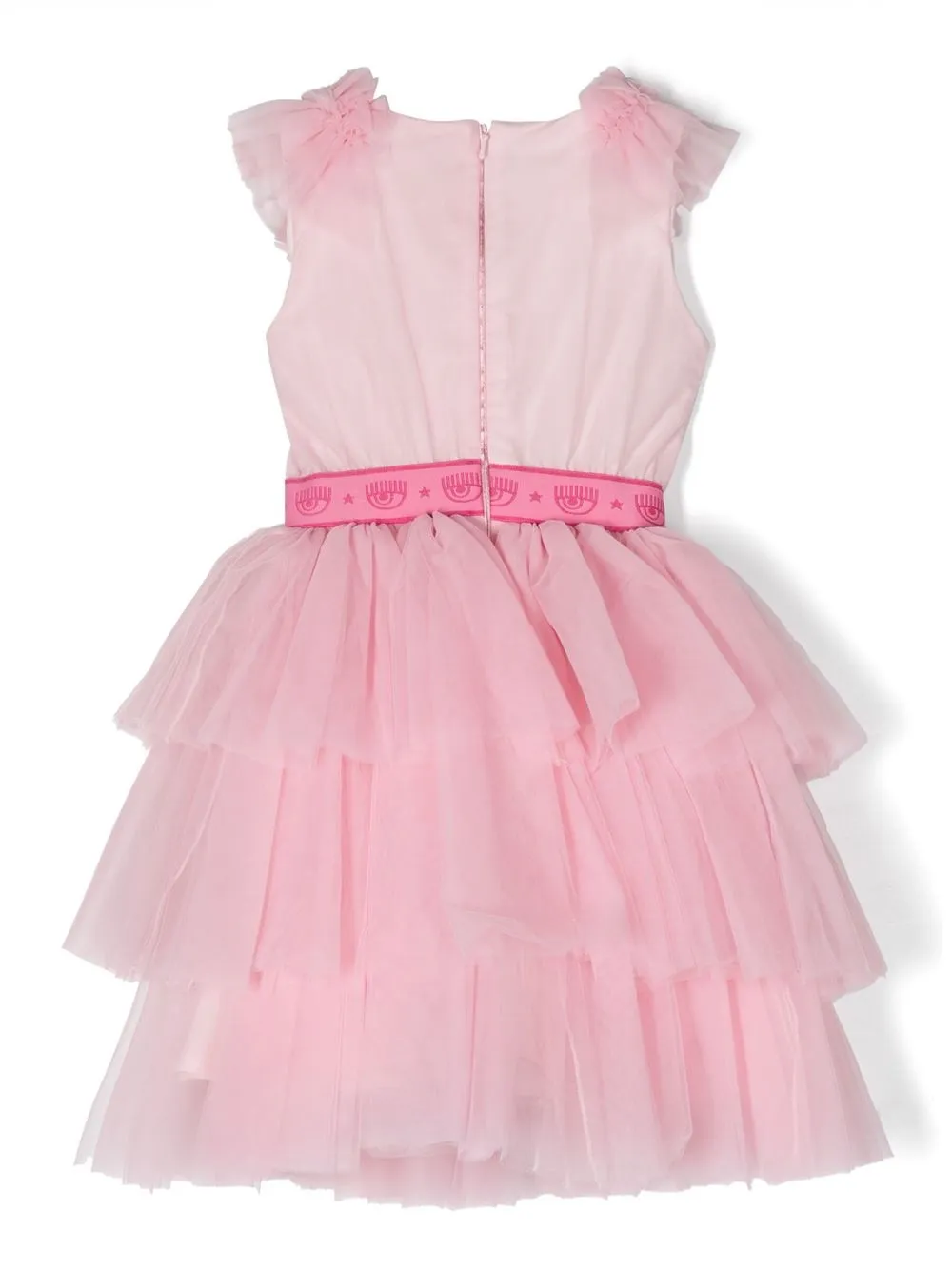 Платье с оборками и логотипом Chiara Ferragni Kids, розовый