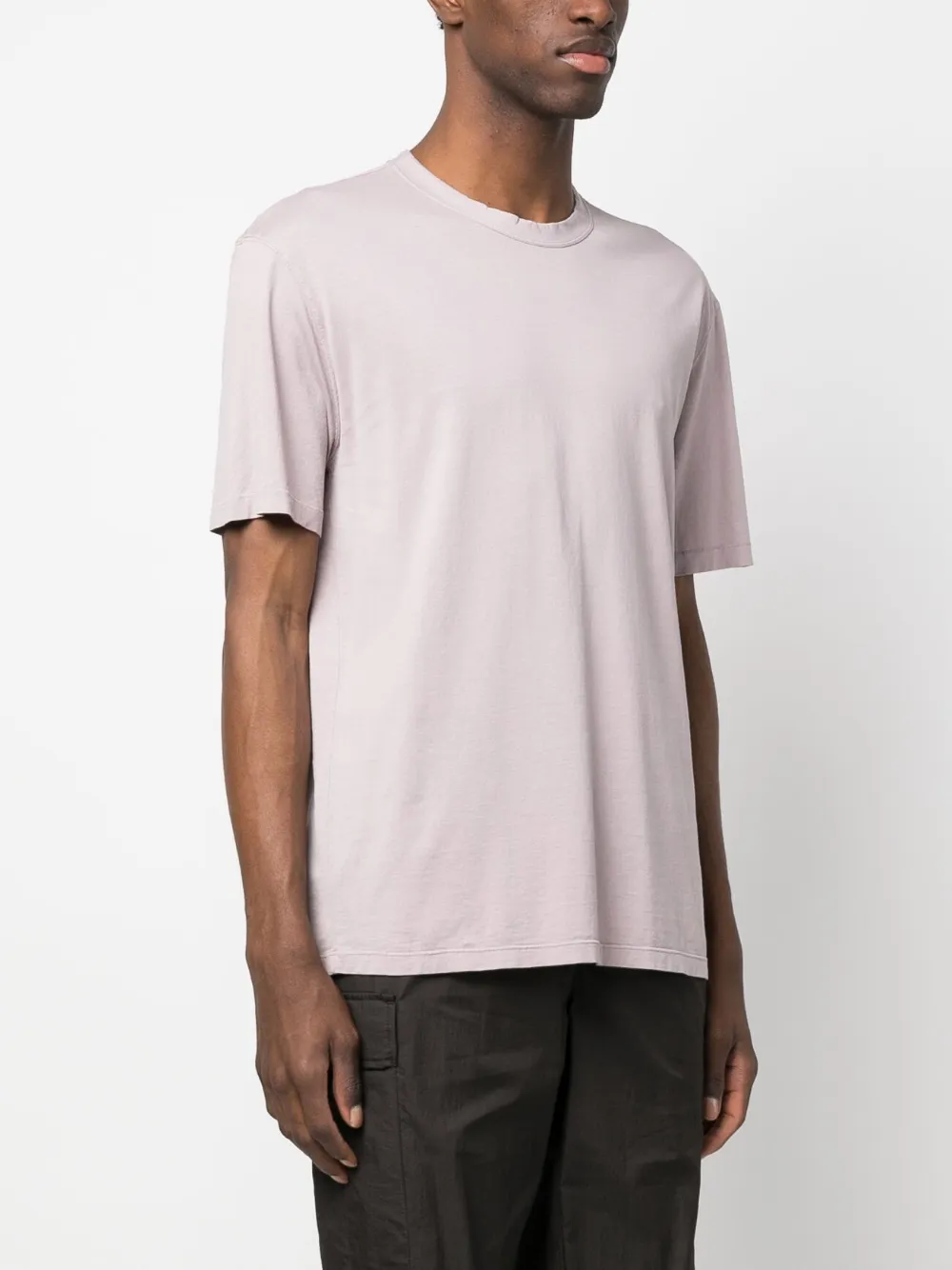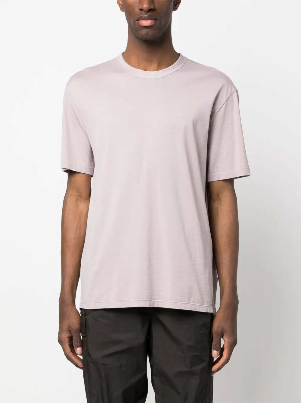 Пудрово-розовый, хлопок, нашивка с логотипом сзади, круглый вырез, короткие рукава и прямой подол.