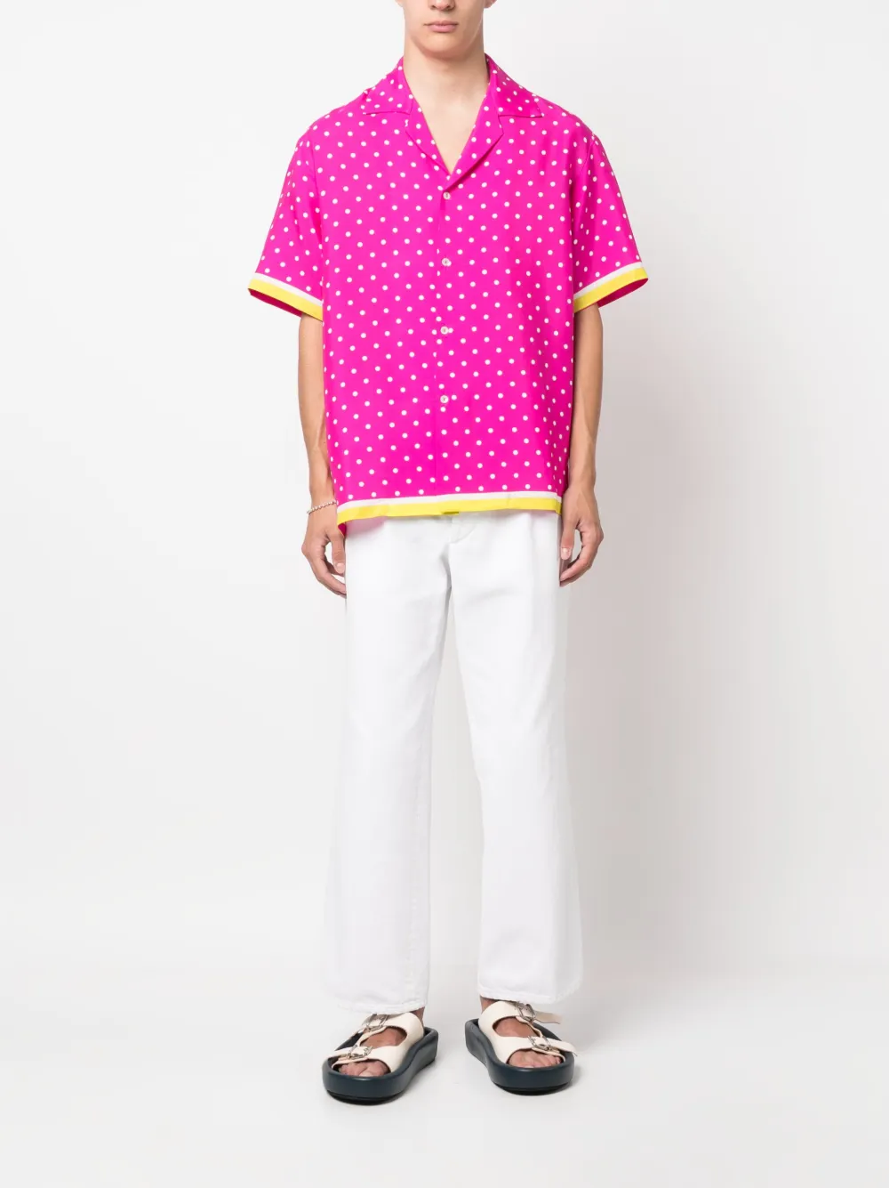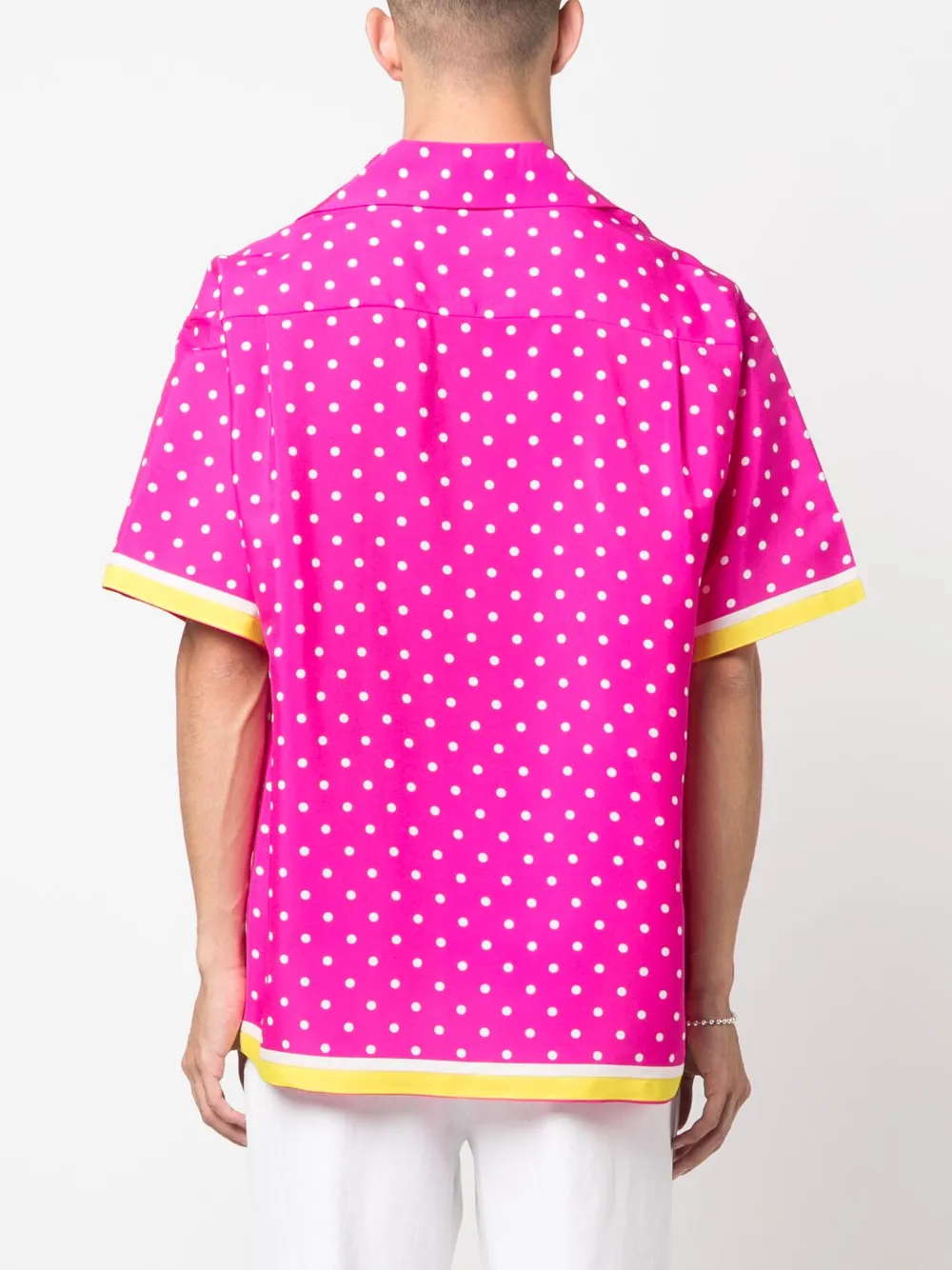 Фуксия и принт в горох.