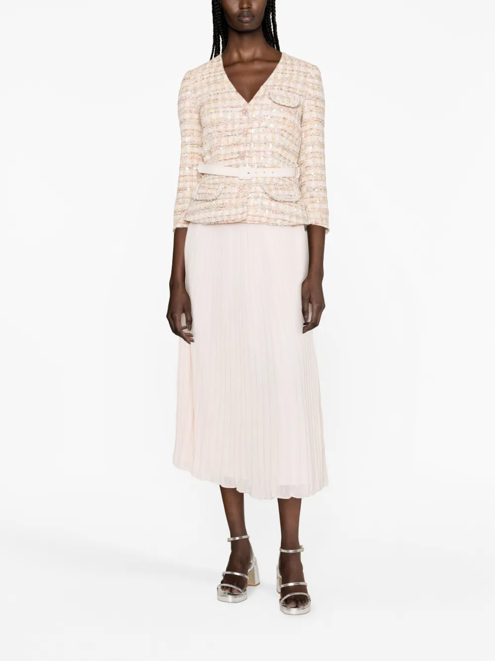 Расклешенное плиссированное платье Self-Portrait, розовый 72 769₽