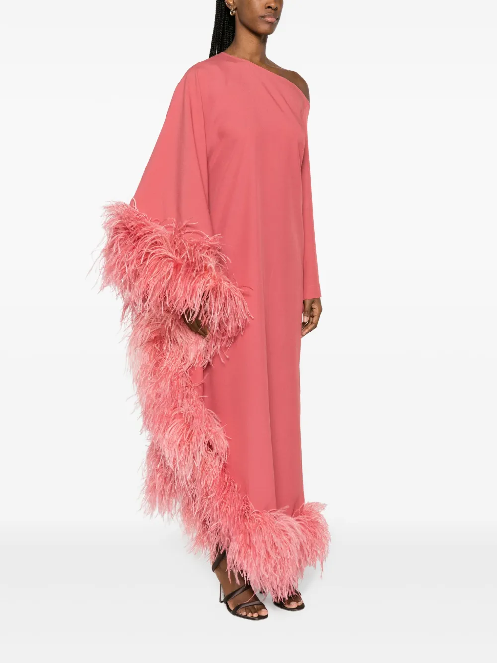 Платье макси Ubud Extravaganza с перьями Taller Marmo, розовый