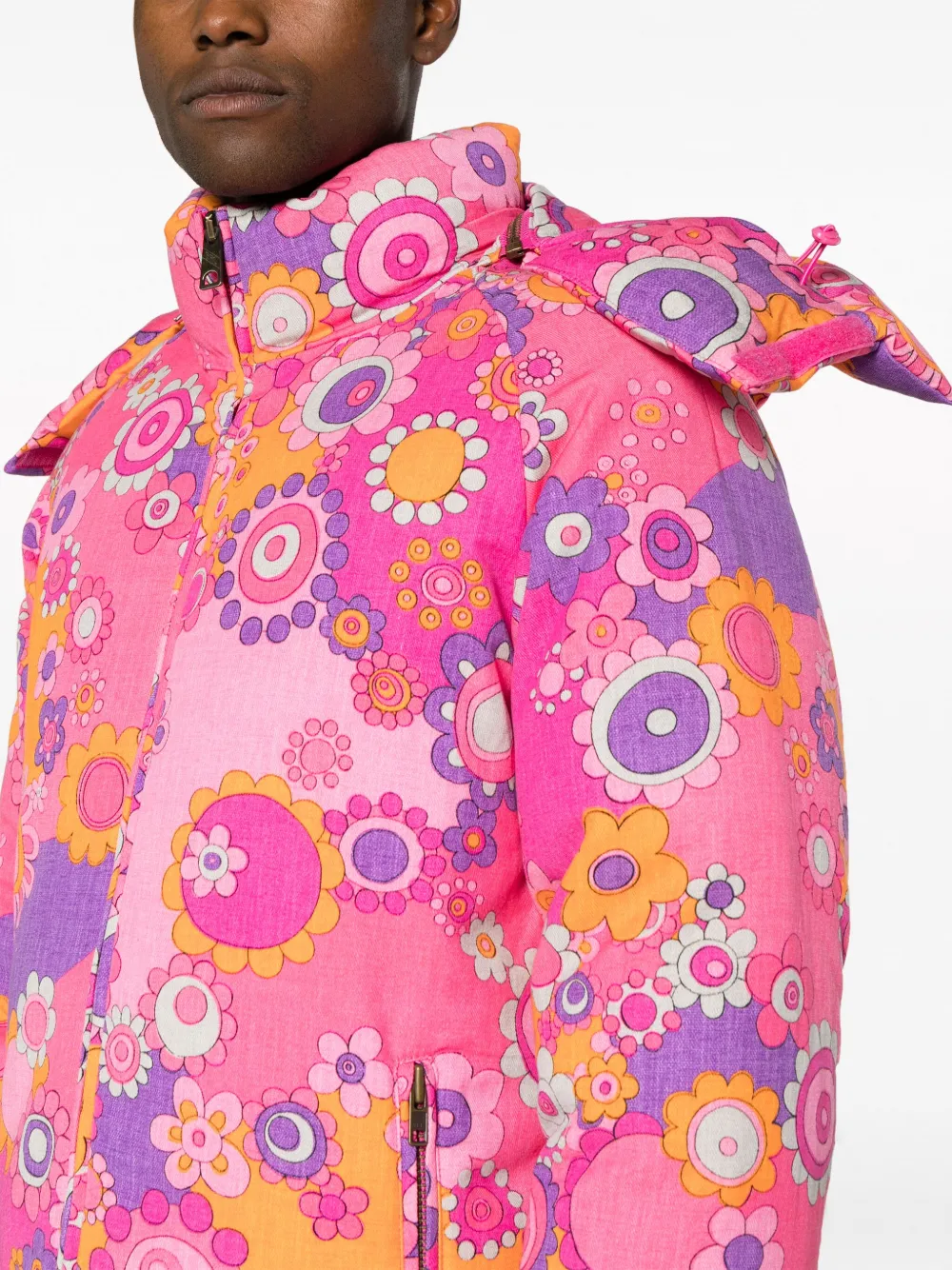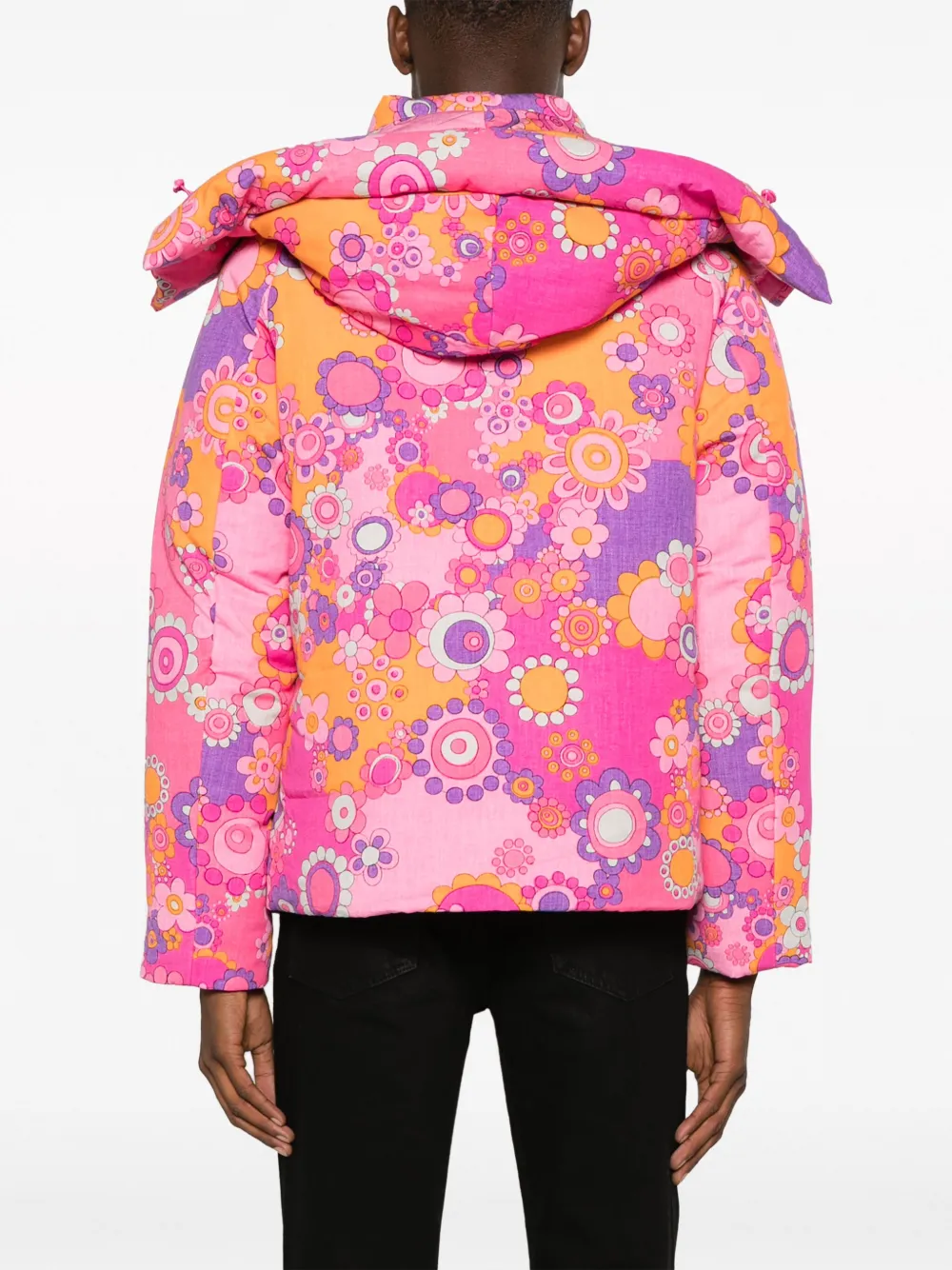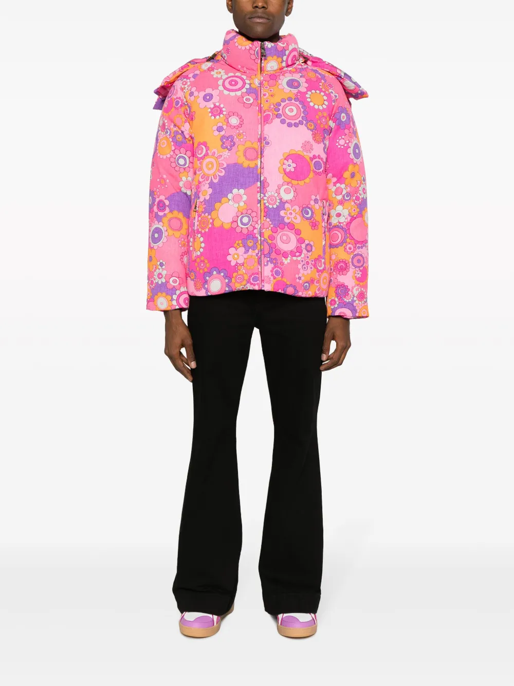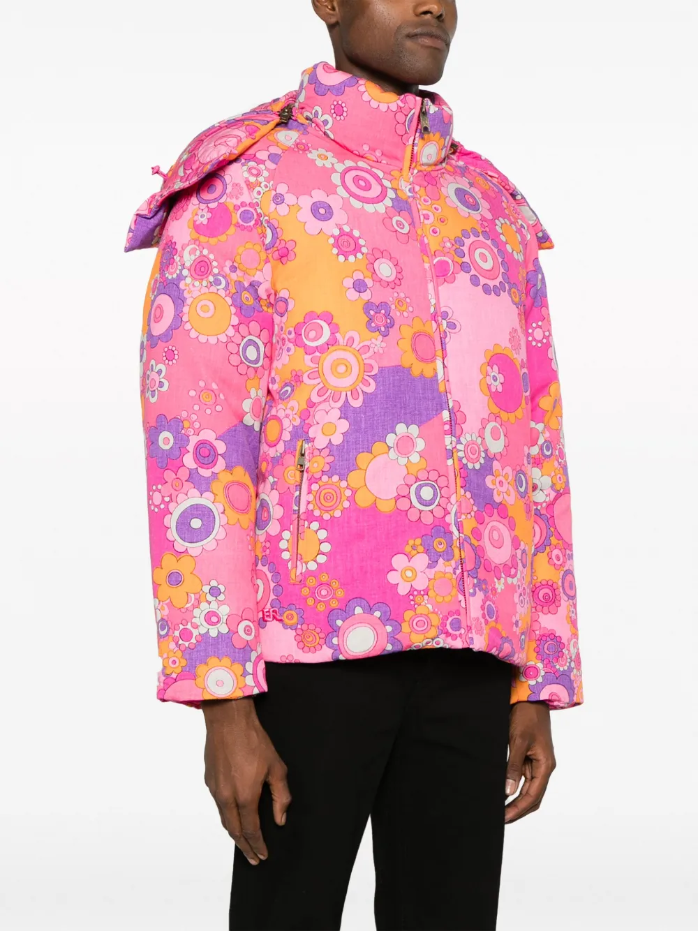 Пуховик с капюшоном и цветочным принтом ERL, розовый