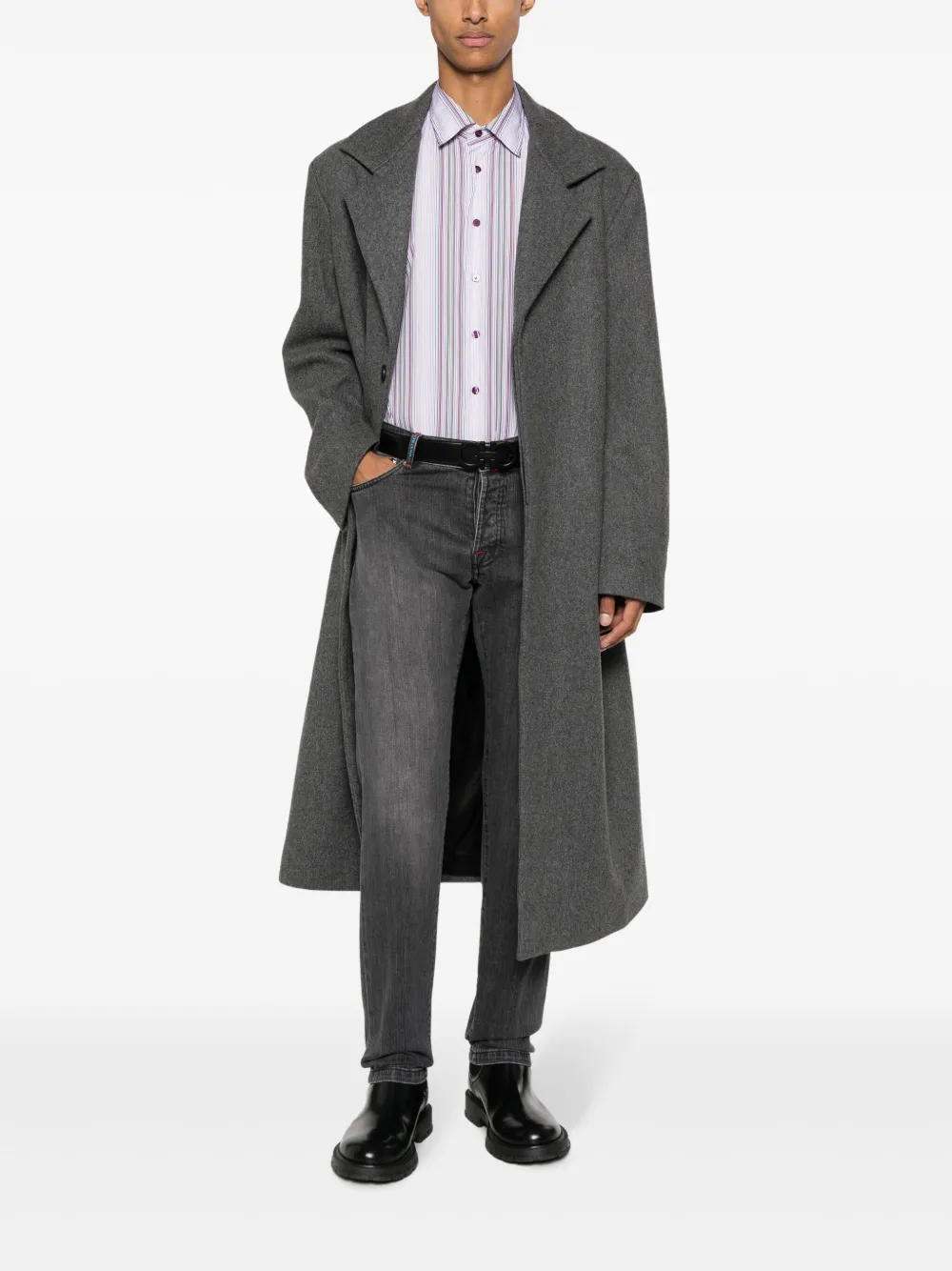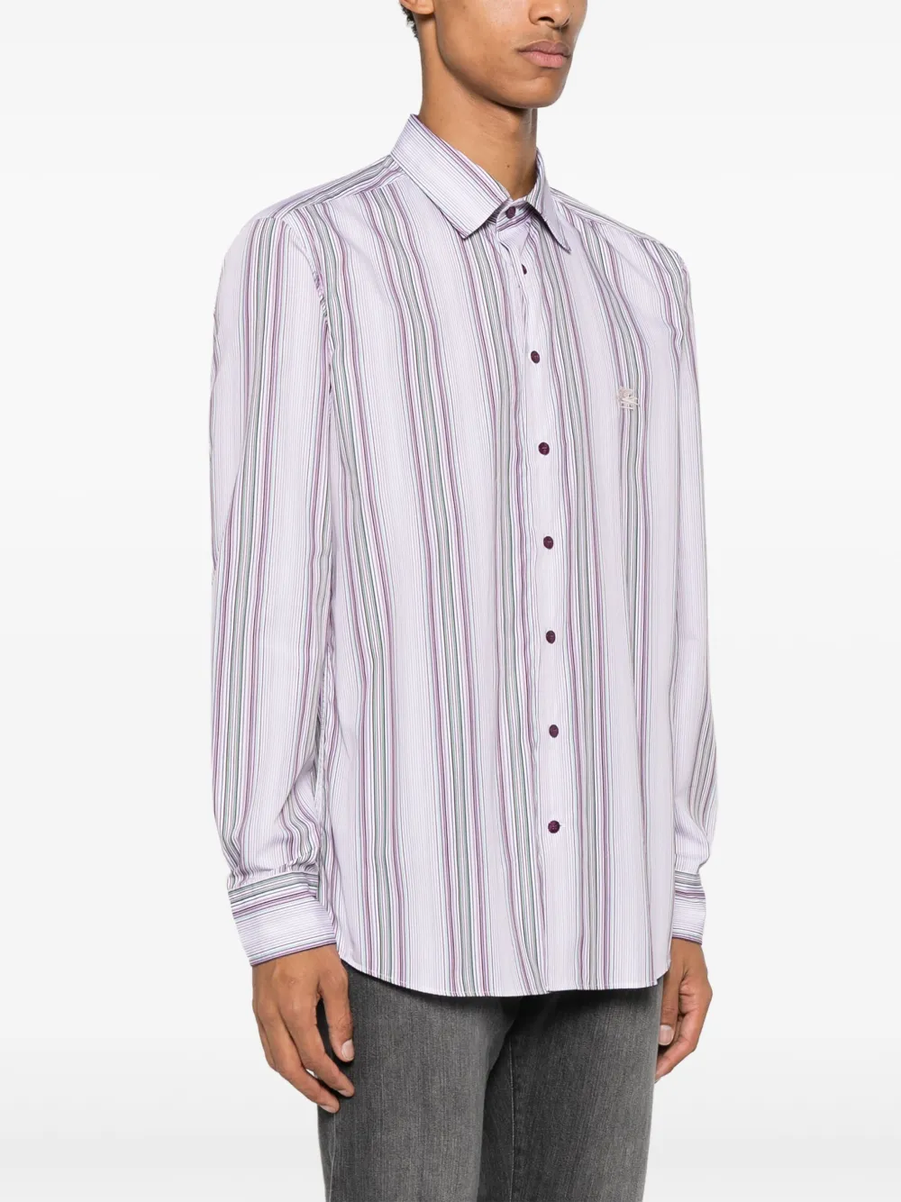 Лиловый, разноцветный, хлопок, узор в вертикальную полоску, вышитый логотип на груди, узор Pegaso, отложной воротник, застежка на пуговицах спереди, длинные рукава, манжеты на пуговицах и прямой подол.