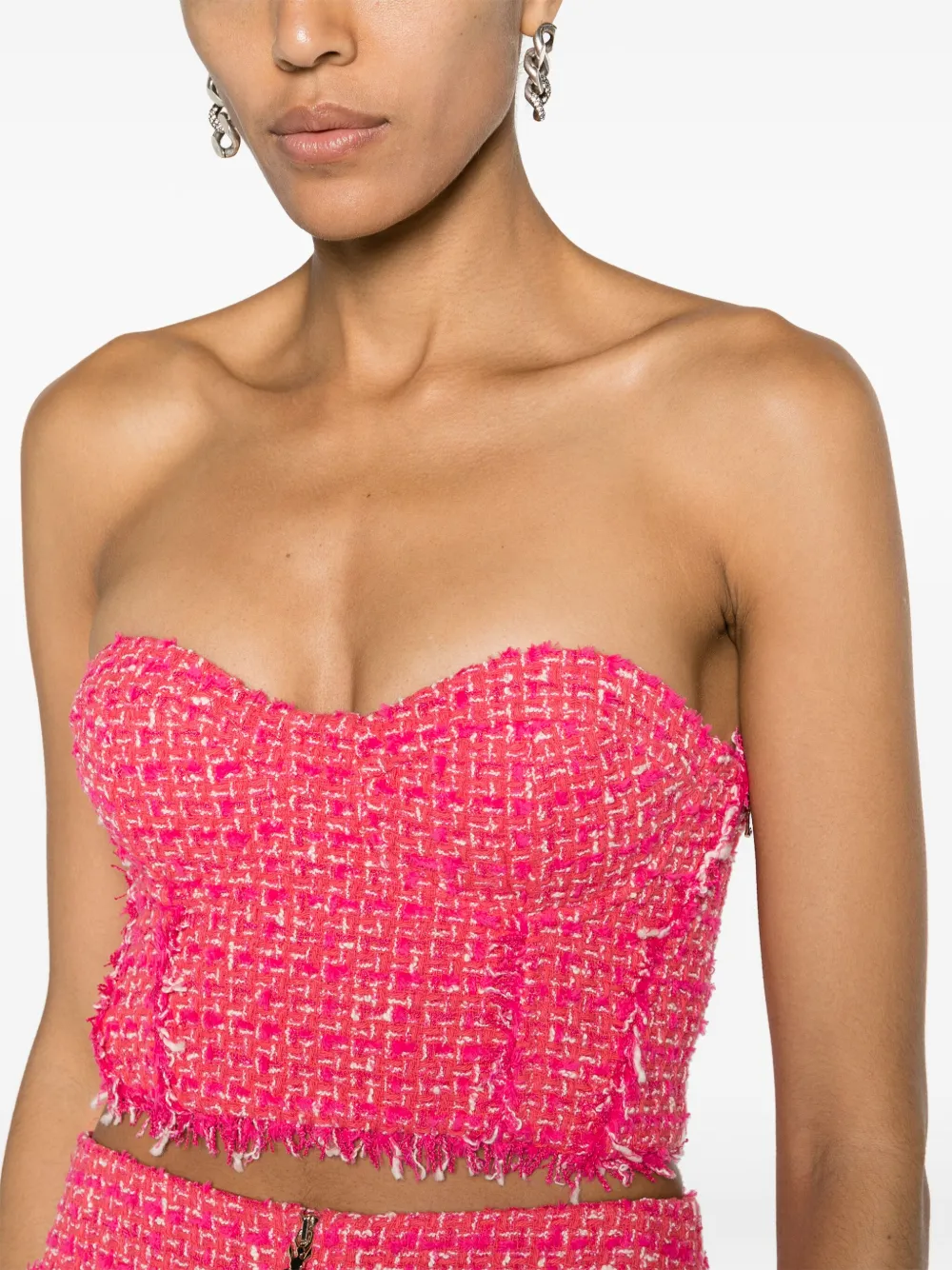 Твидовый топ-бюстье с бахромой Patrizia Pepe, розовый