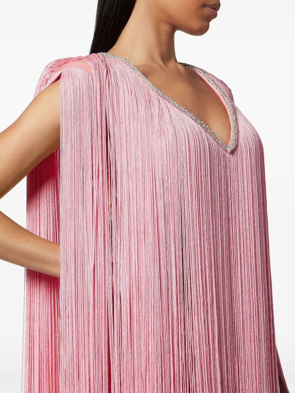 Платье мини с V-образным вырезом и бахромой Philipp Plein, розовый 135 603₽