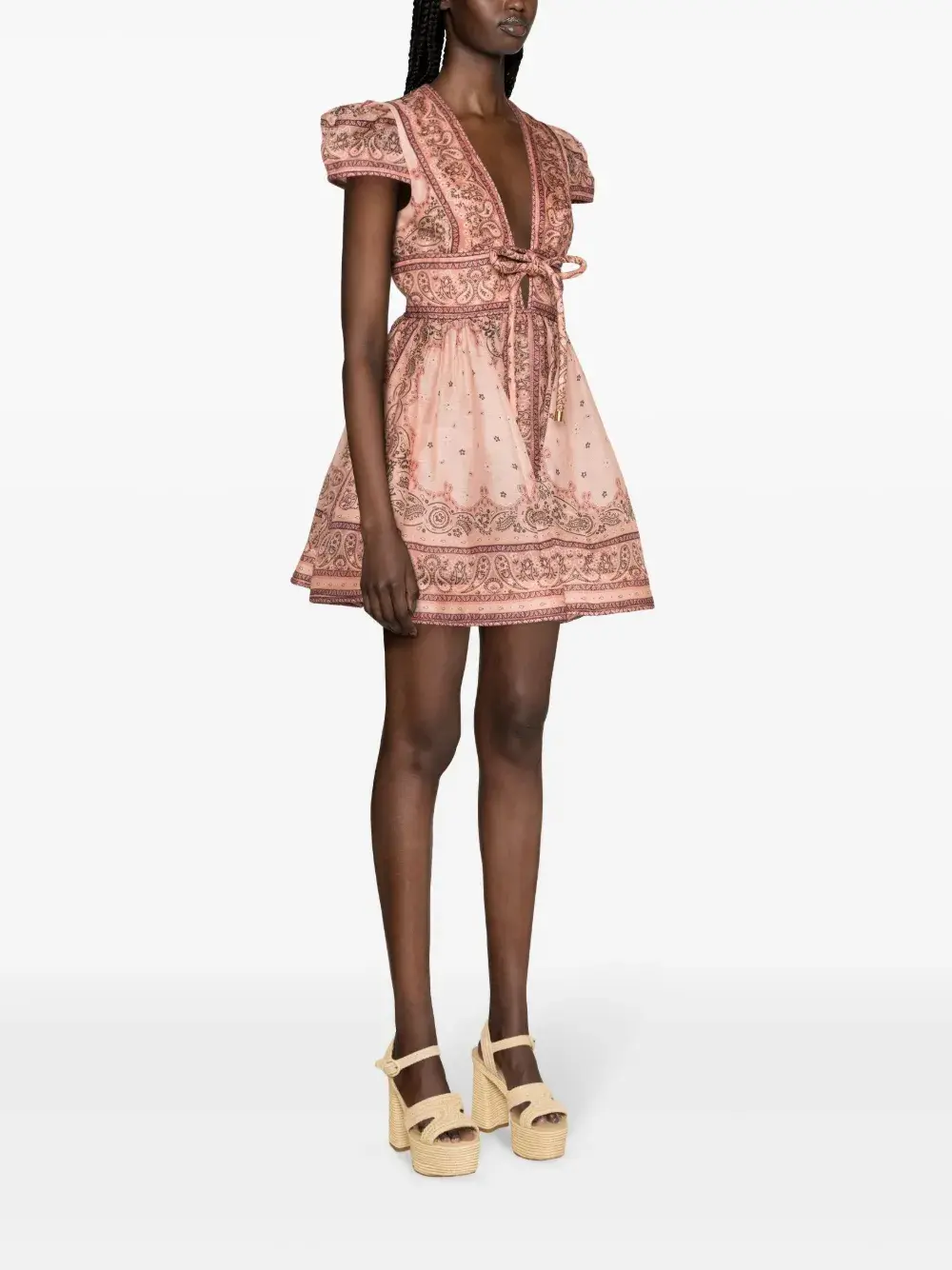 Расклешенное платье мини с принтом ZIMMERMANN, розовый