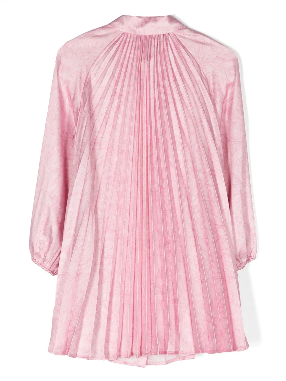 Плиссированное платье с принтом Barocco Versace Kids, розовый