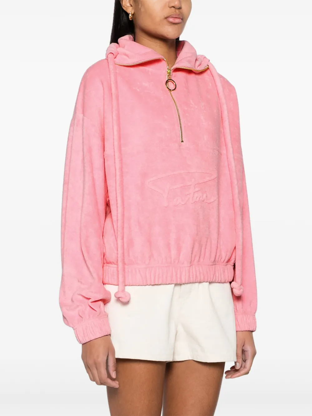 Махровое худи с воротником на молнии PATOU, розовый