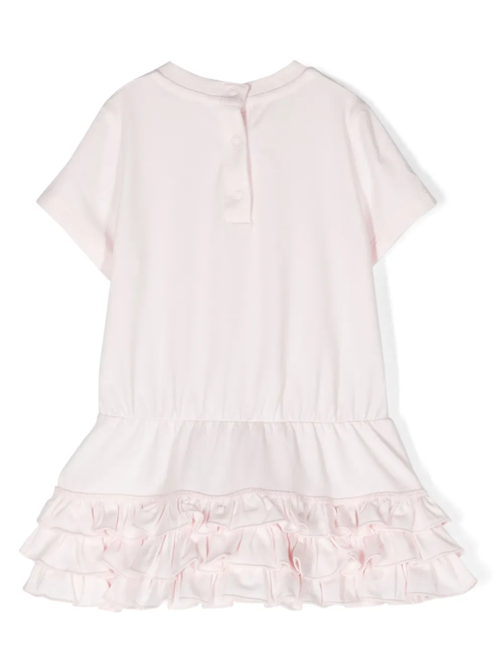 Платье с оборками и нашивкой-логотипом Moncler Enfant, розовый