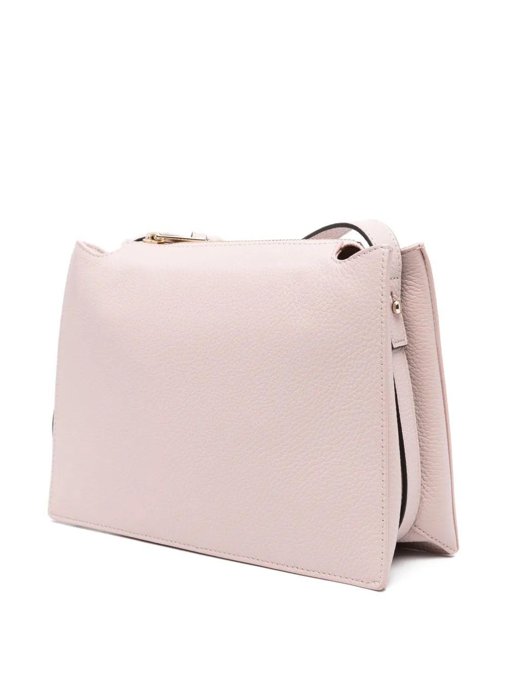 Подробнее о товаре: • светло-розовый • кожа • зернистая текстура • регулируемый ремень на плечо • золотистый металлический логотип • логотип спереди • несколько отделений • внутренний карман на молнии • внутренняя вставка с логотипом • внутренняя вставка с логотипом • цельная подкладка • золотистая фурнитура • застежка на молнии сверху • В комплект входит мешок-пыльник для хранения.