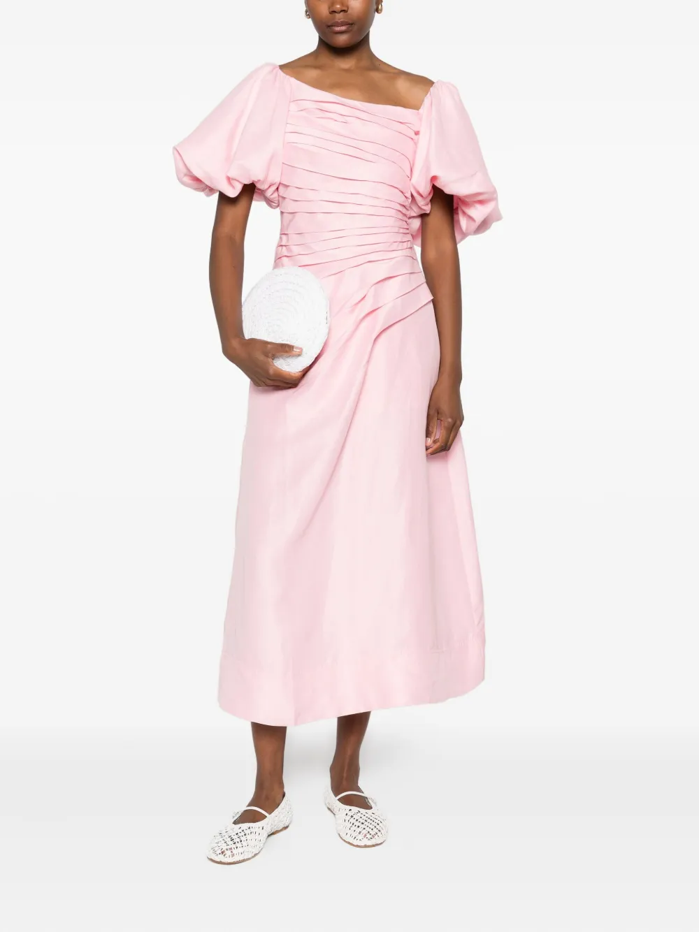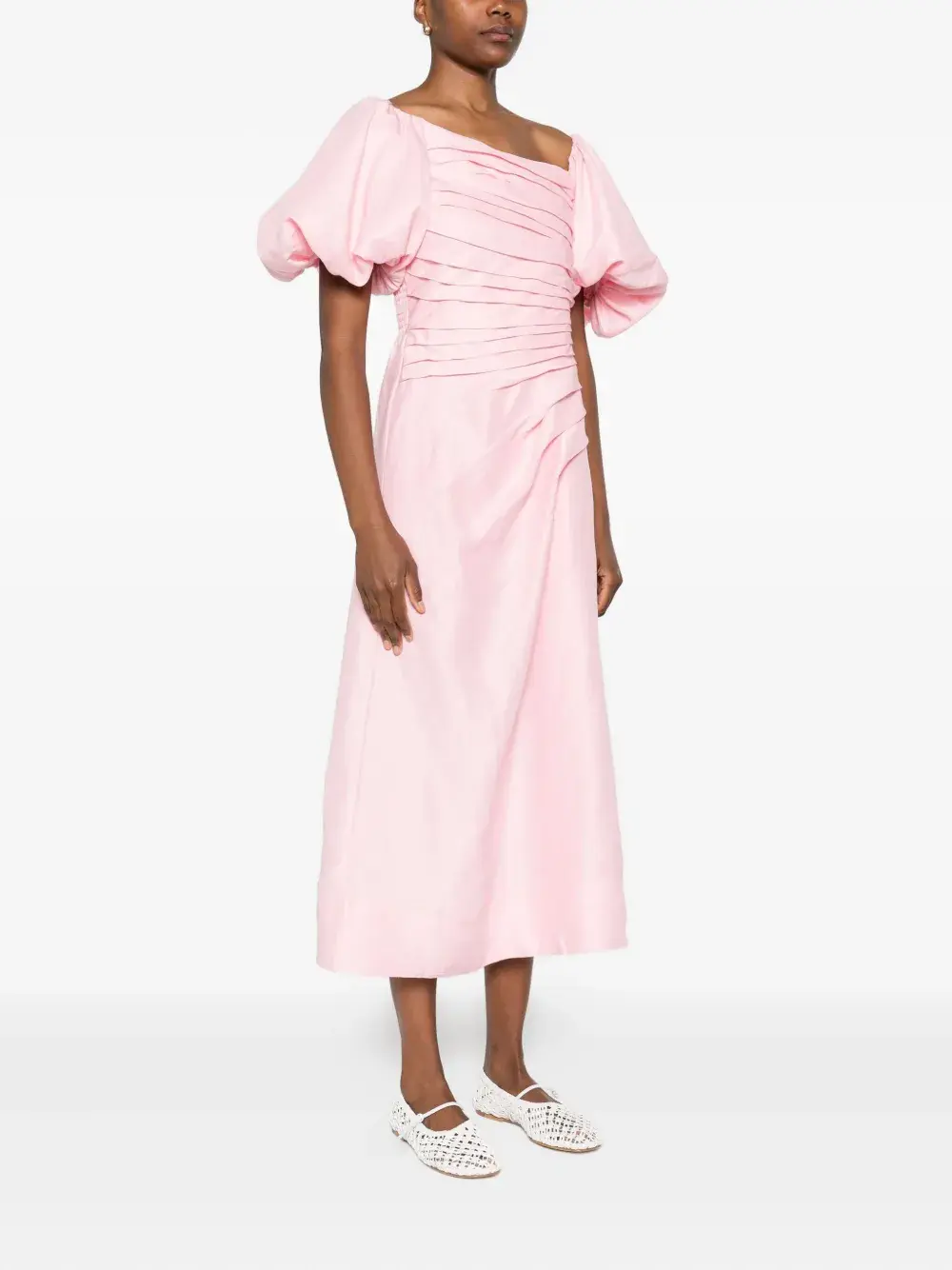 Светло-розовые плиссированные детали, короткие рукава-фонарики
