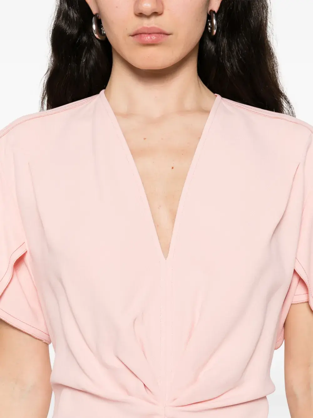 Розовая застежка-молния сзади, V-образный вырез, короткие рукава, средняя длина