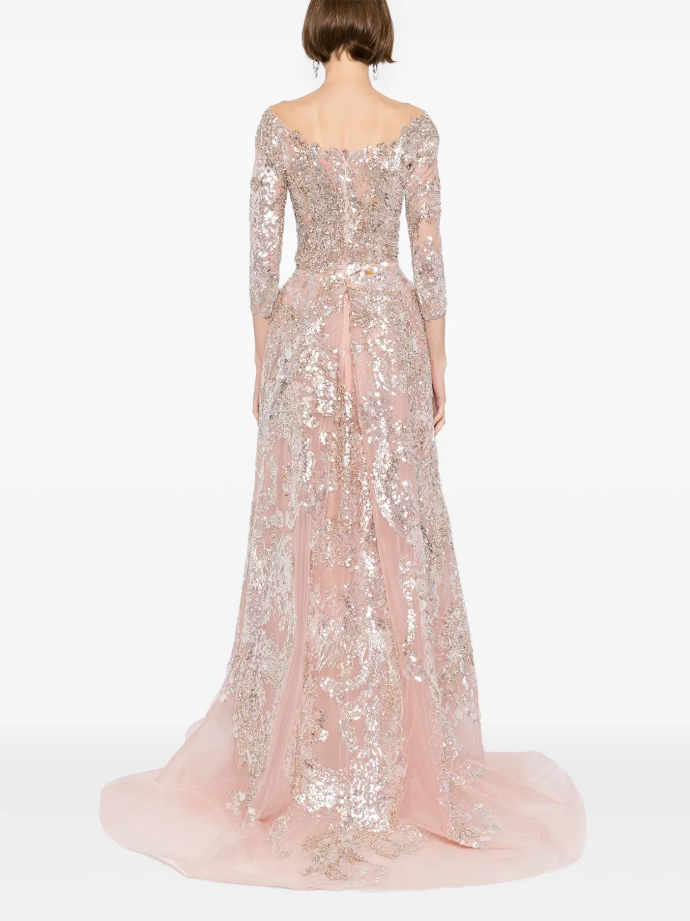 Вышитое макси-платье Saiid Kobeisy, розовый