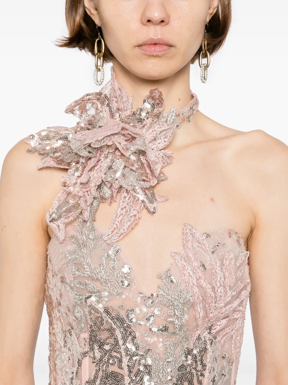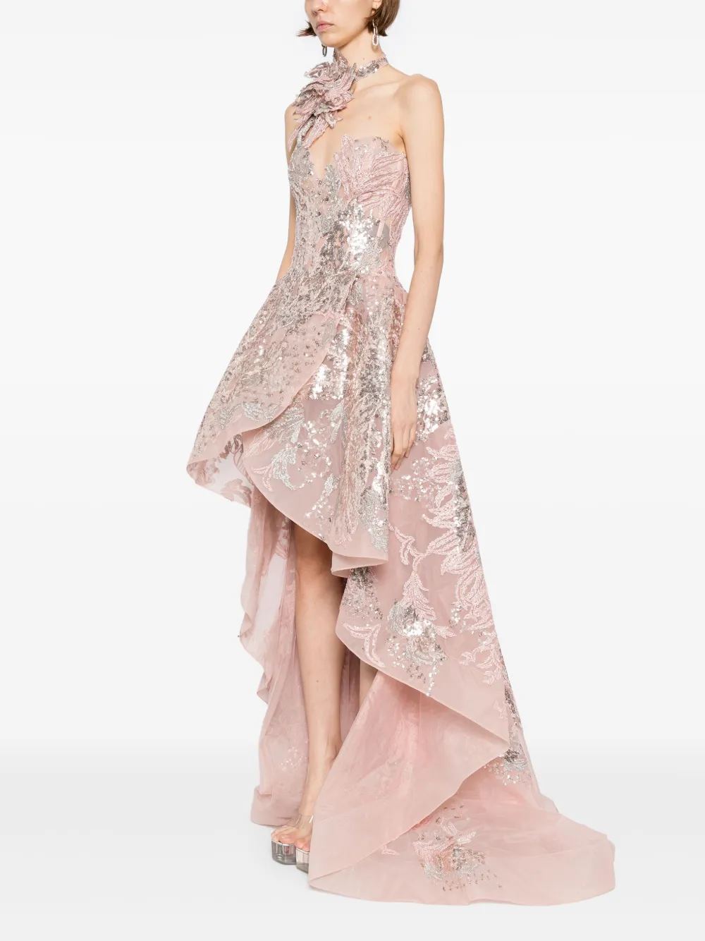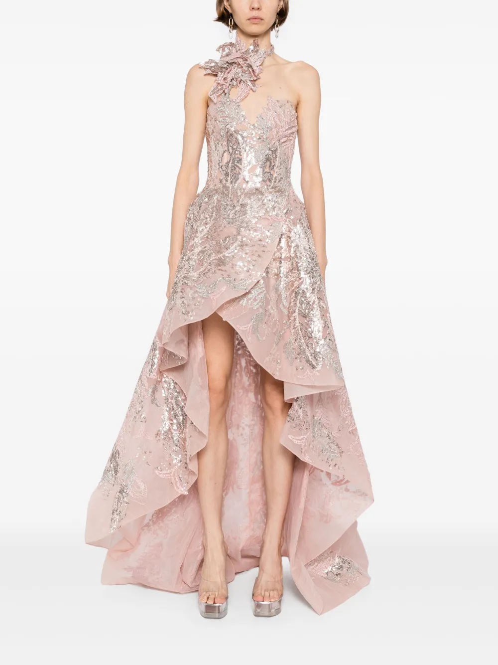 Вышитое макси-платье Saiid Kobeisy, розовый