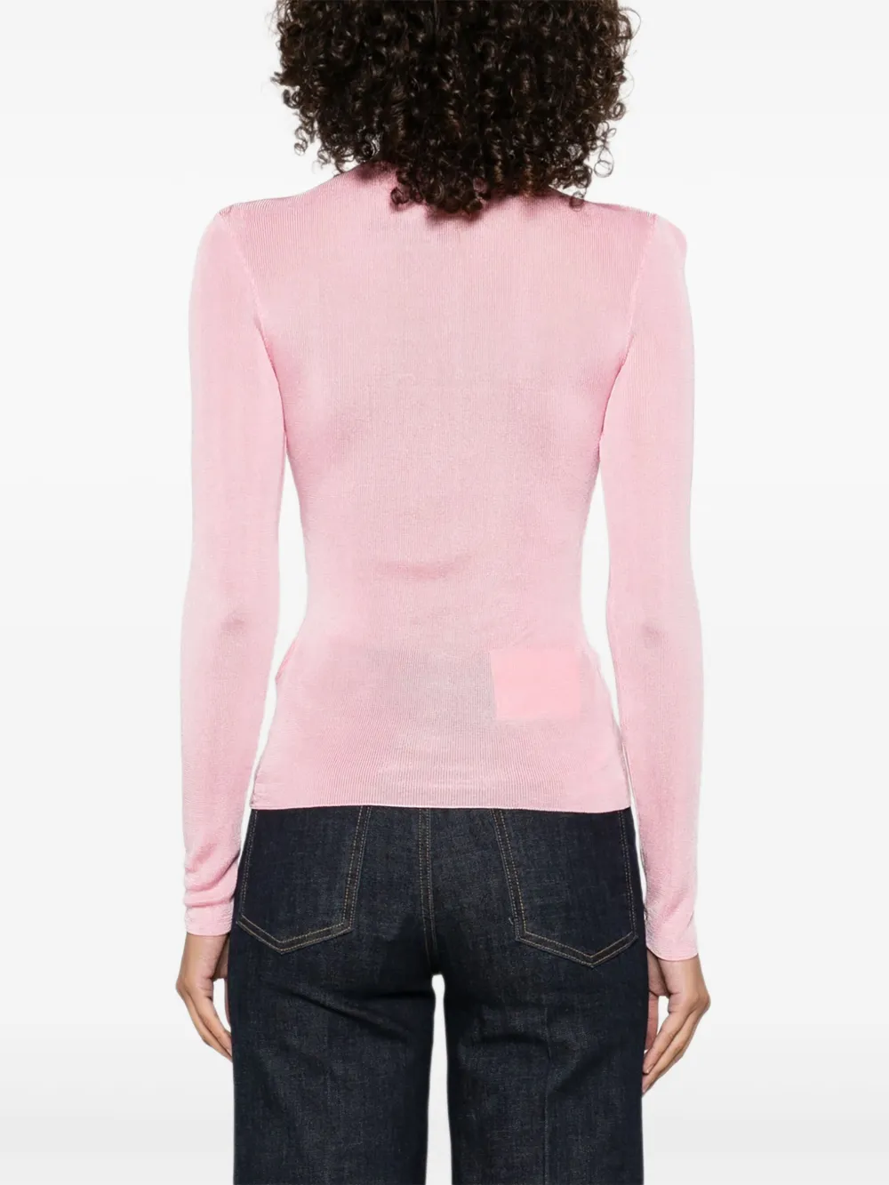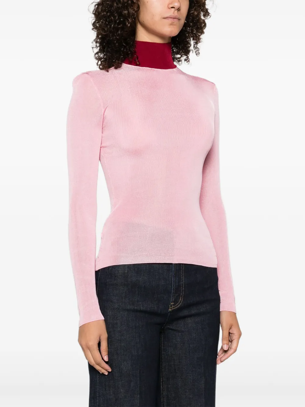 Ребристый топ с высоким воротом Self-Portrait, розовый