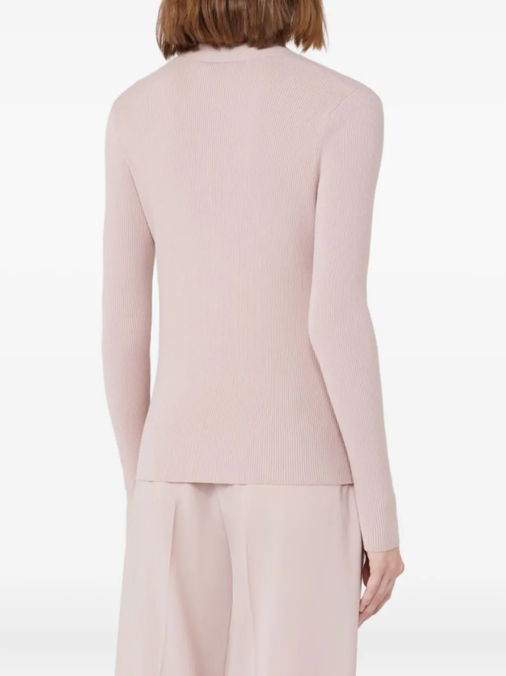 Розовая ребристая фактура, V-образный вырез, длинные рукава, застежка на пуговицы