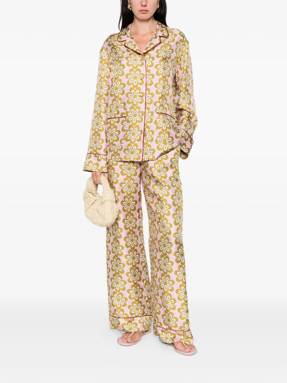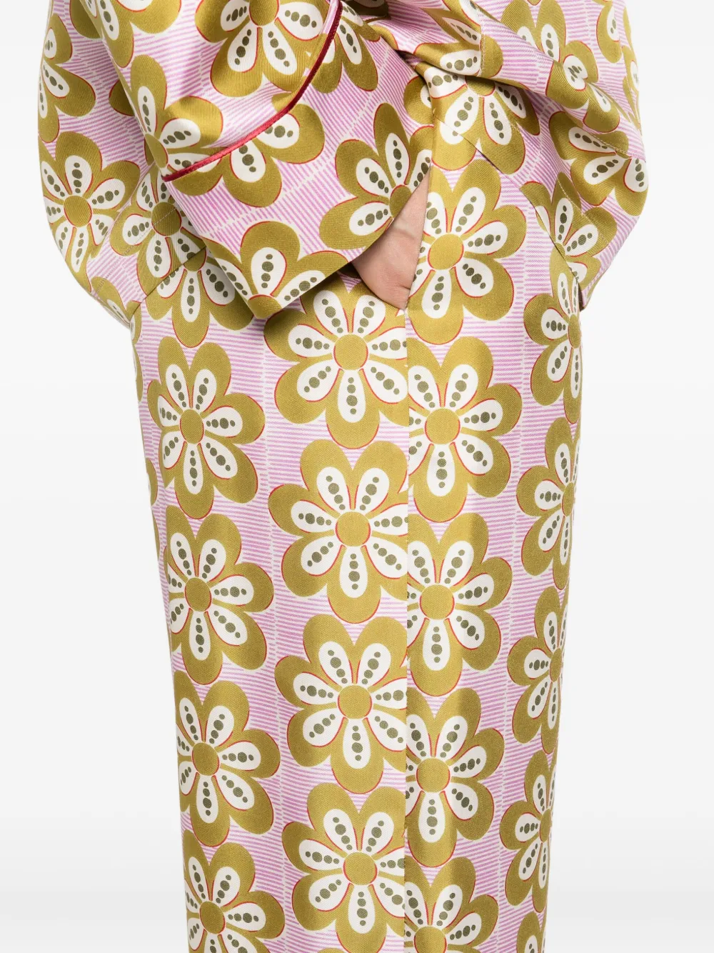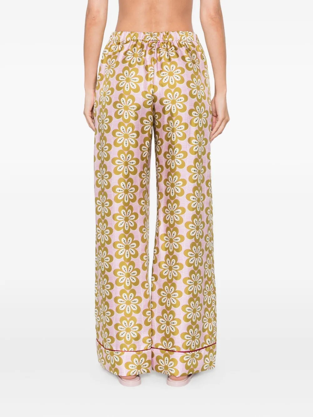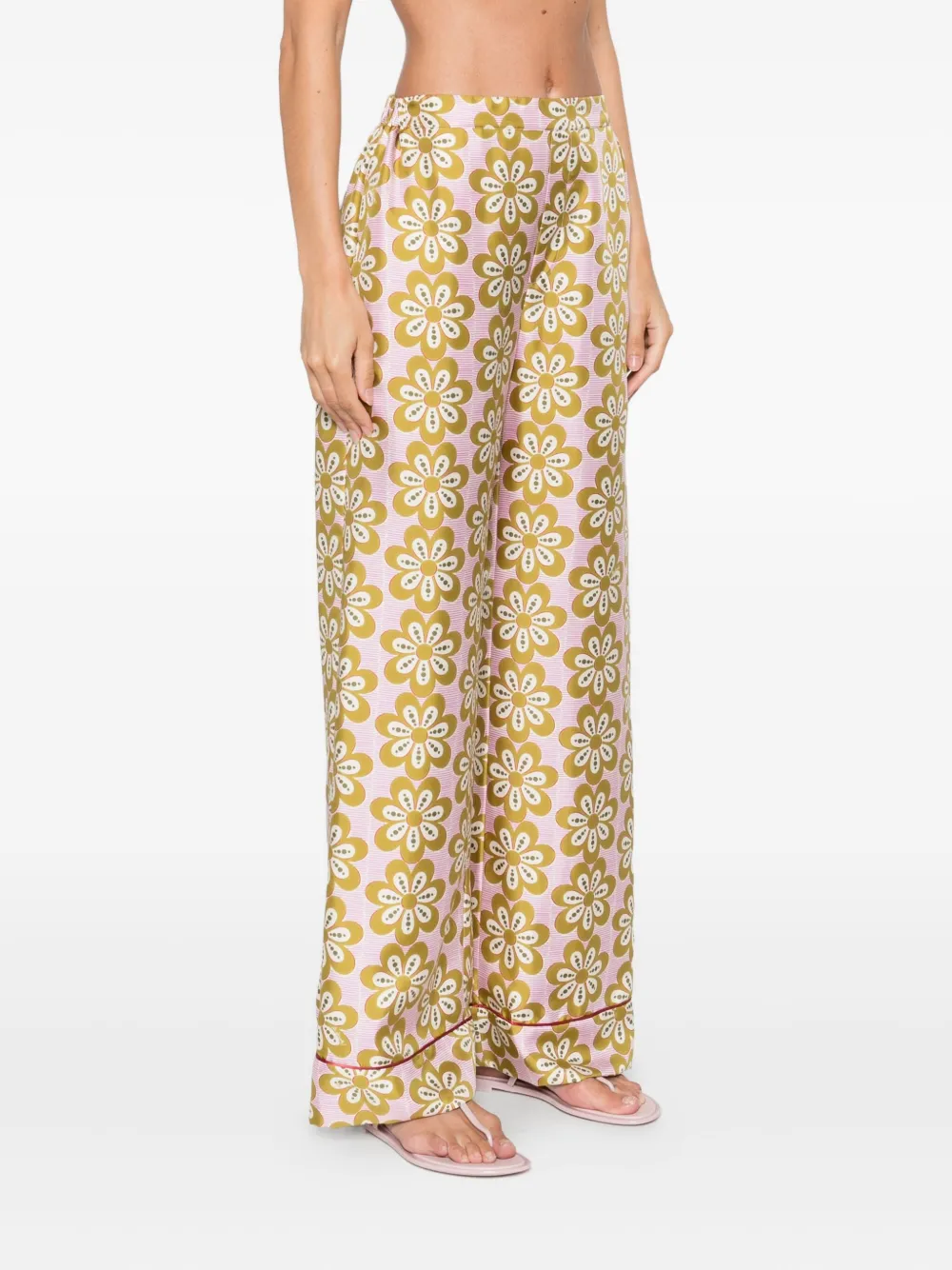 Шелковые брюки с цветочным принтом La DoubleJ, розовый