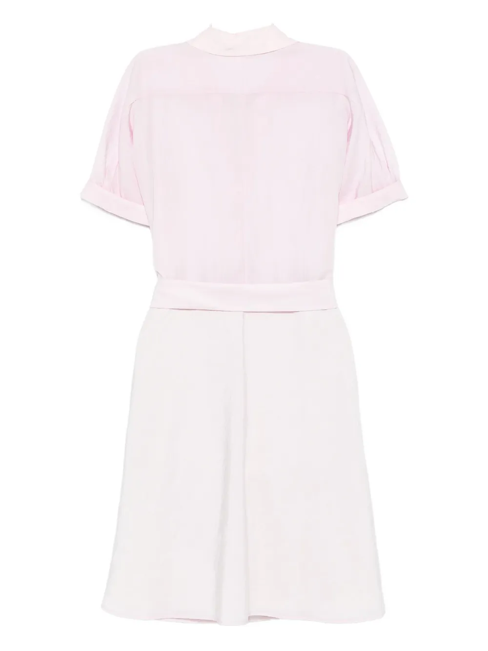 Розовые короткие рукава, застежка на кнопки, отложной воротник, пояс на талии, юбка А-силуэта