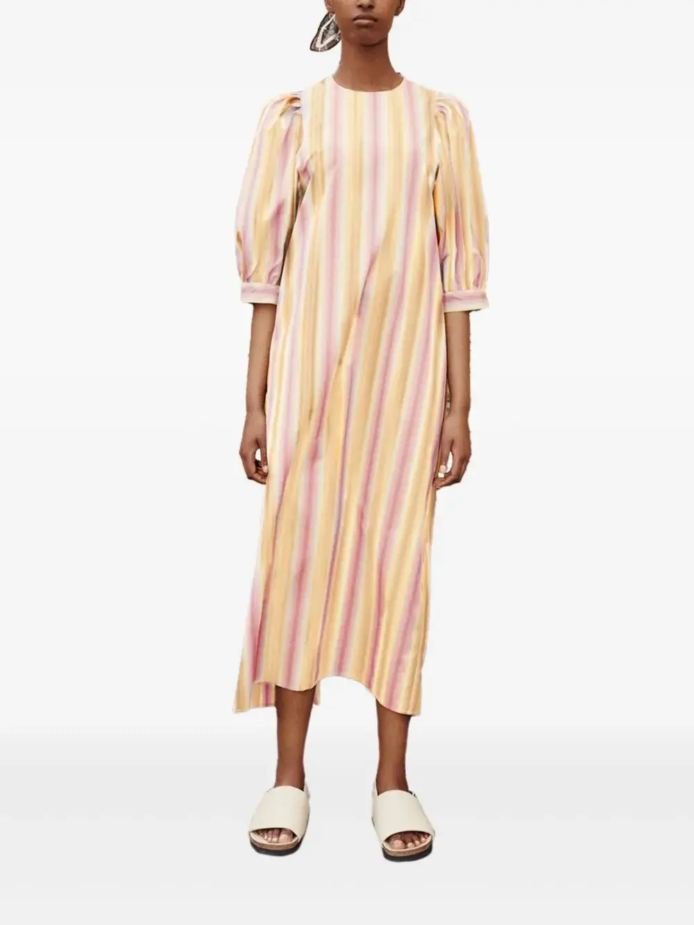 Розово-желтые полоски из органического хлопка, длина миди, круглый вырез, рукава-буфы
