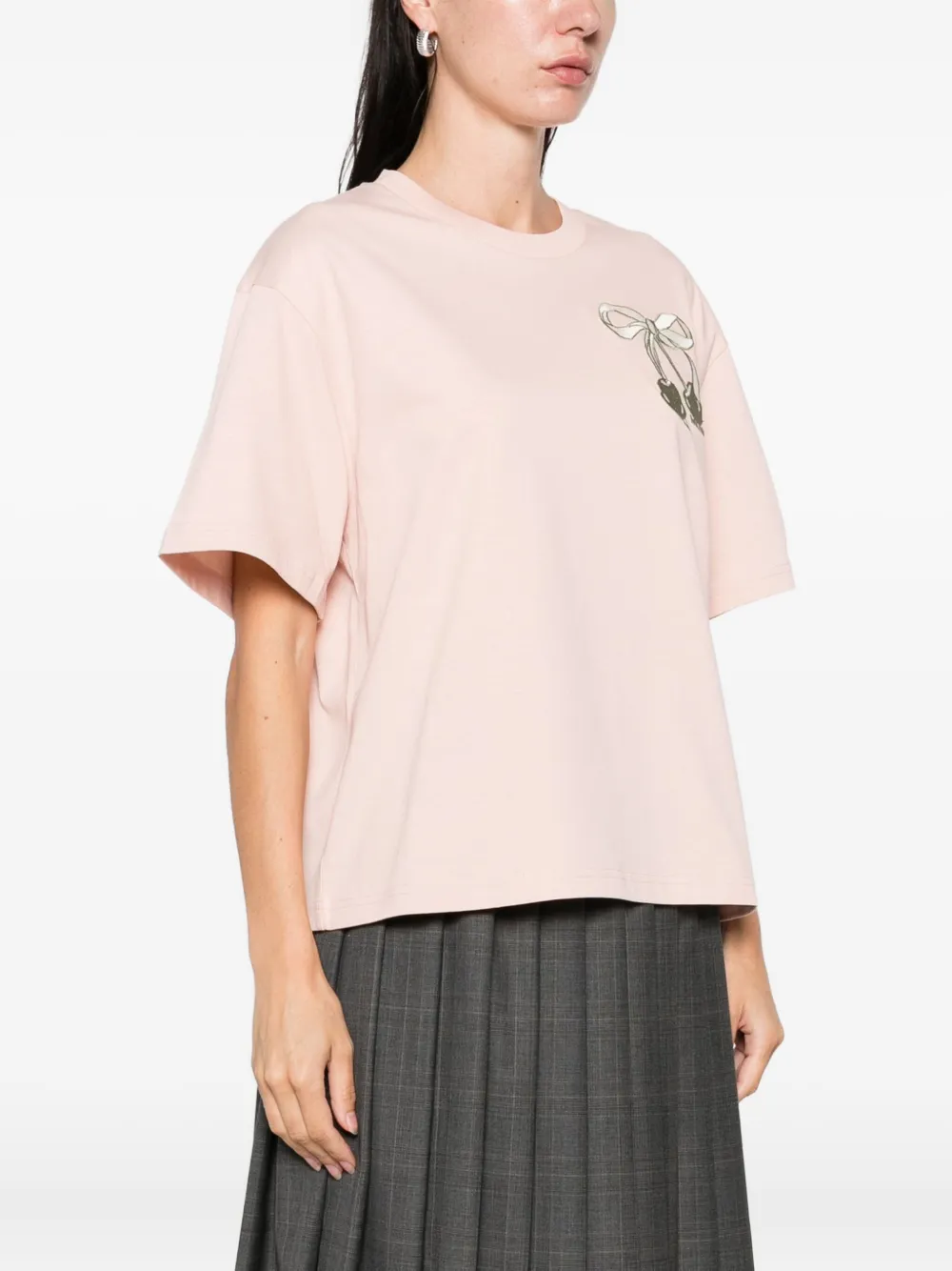 Розовый вышитый бант, вышитый логотип, короткие рукава, круглый вырез, хлопок