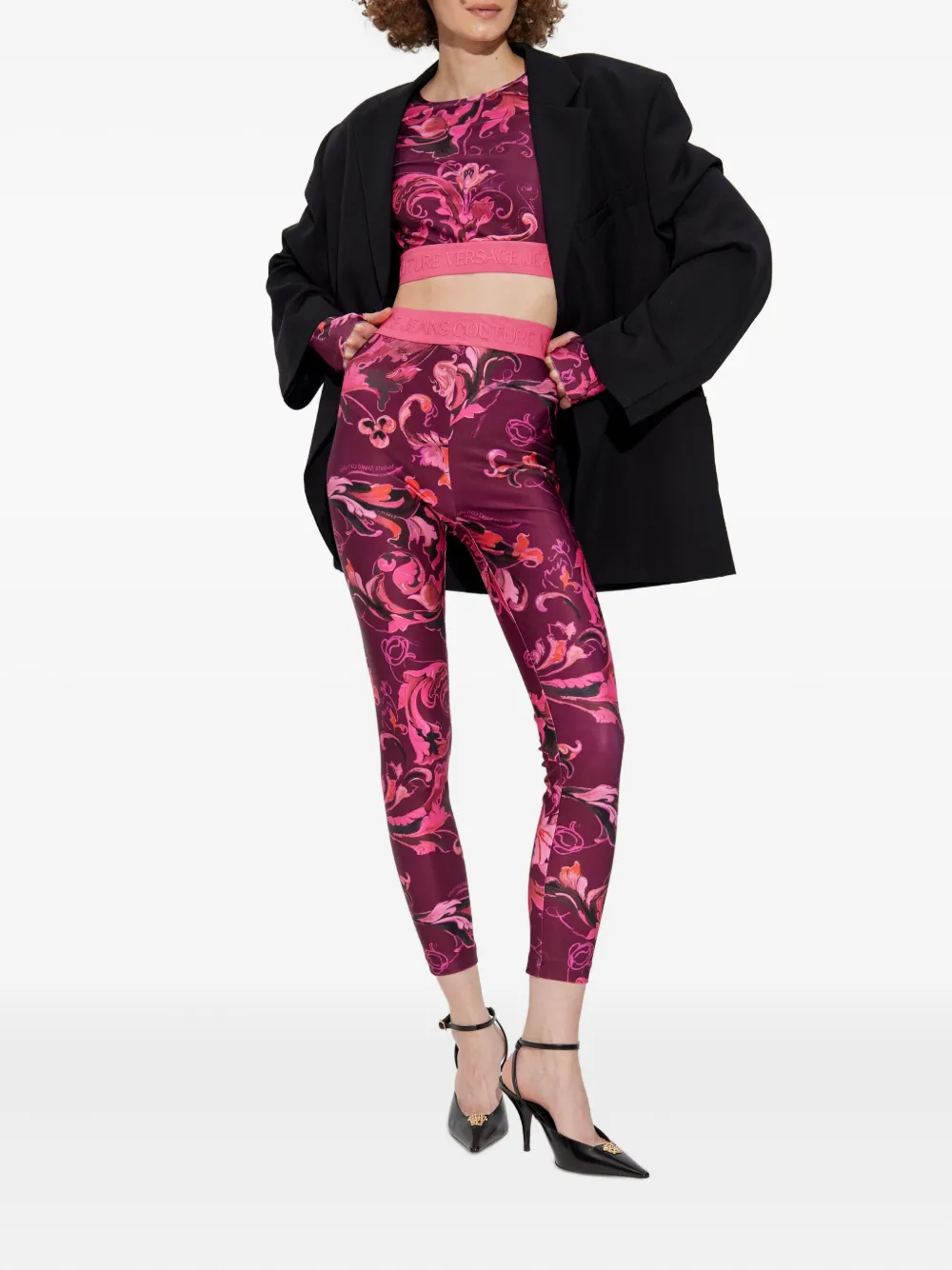 Леггинсы с принтом «Барокко» Versace Jeans Couture, розовый