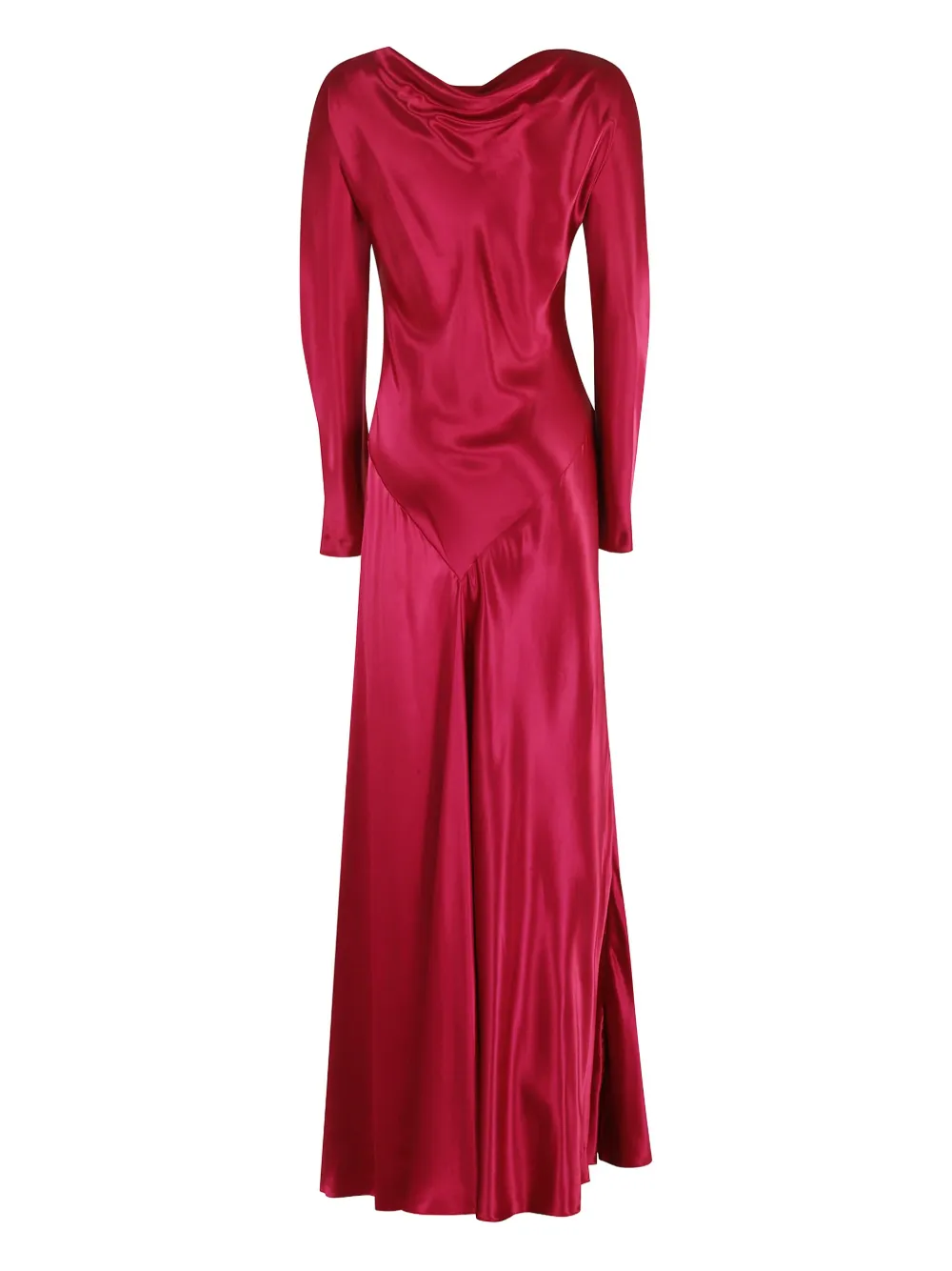 Фуксия, воротник-хомут, косой крой, длинные рукава, длина макси
