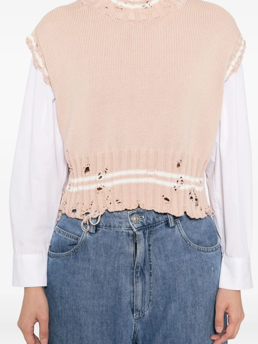Светло-розовая водолазка с эффектом потертости без рукавов