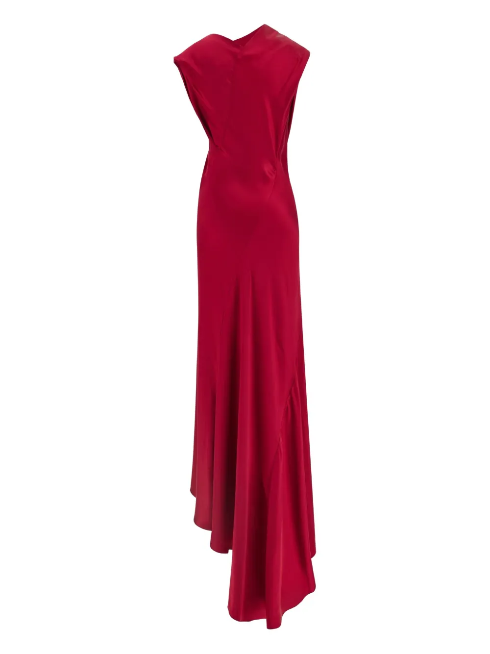 Атлас цвета фуксии с шелковистым эффектом, воротник-хомут, короткие рукава, асимметричный подол, фасон «русалка»