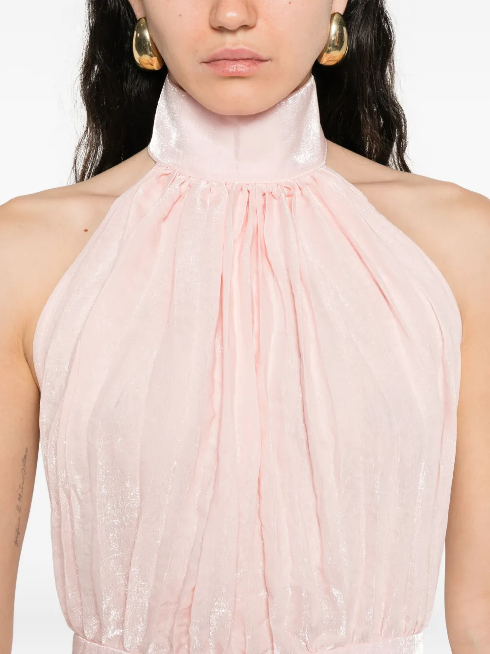 Светло-розовый плиссированный топ без рукавов с халтером