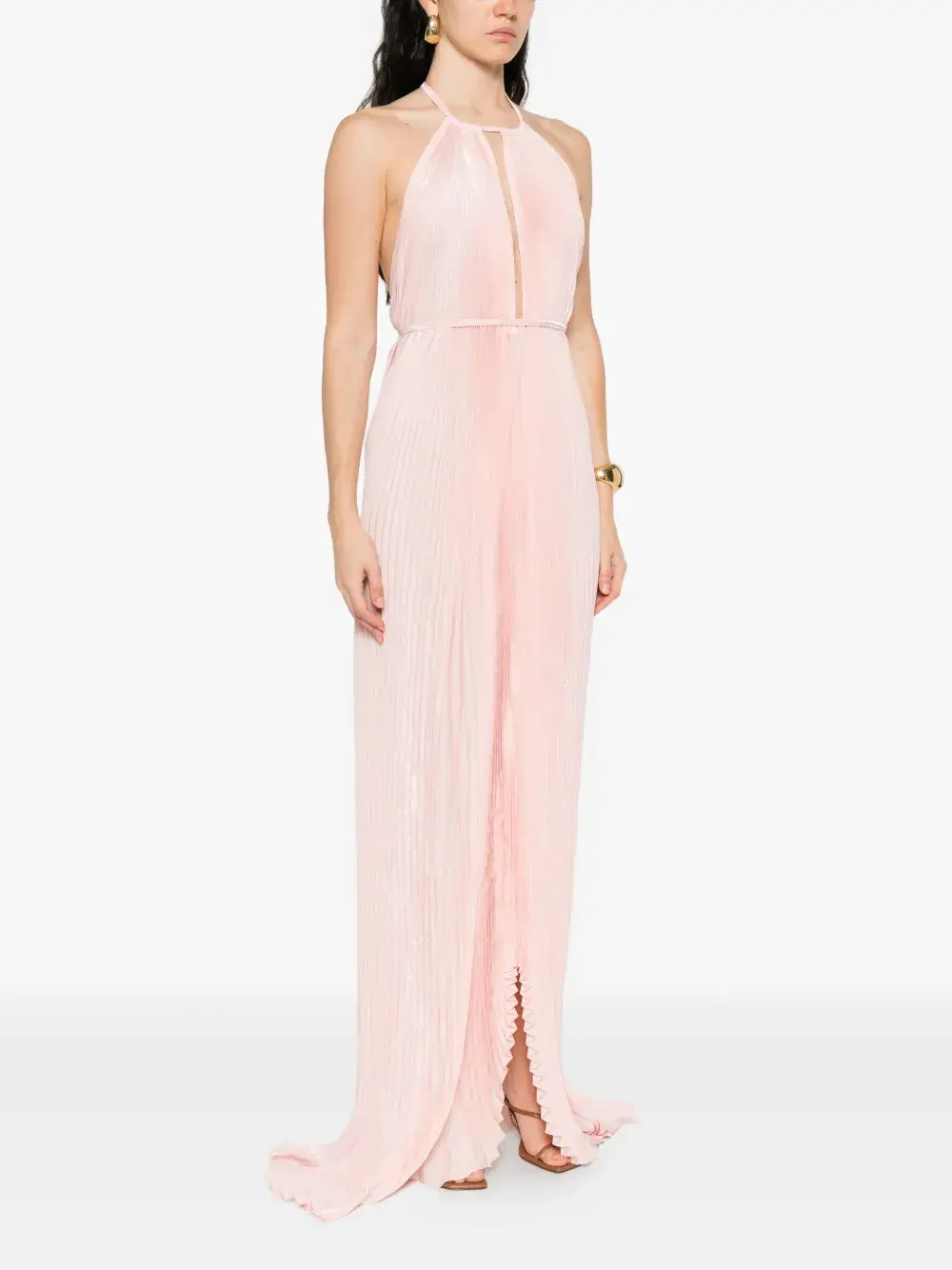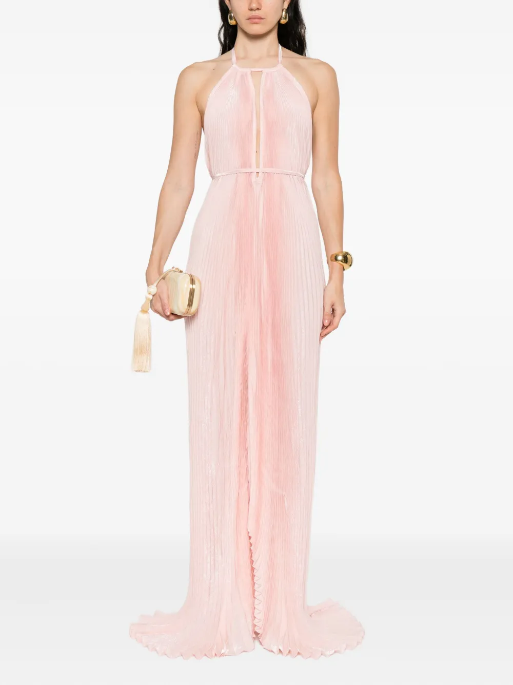 Плиссированное платье с халтернеем L'IDÉE, розовый