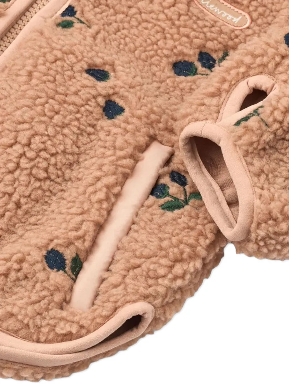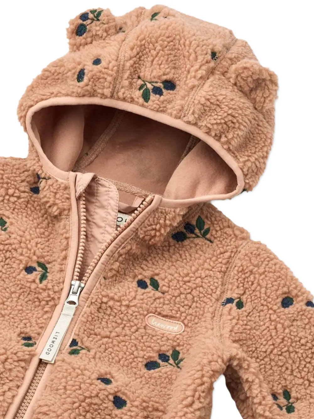 Вышитый узор в виде пыльной розы с черникой, плюшевые ушки, капюшон, застежка-молния спереди, два прорезных кармана, флисовая ткань