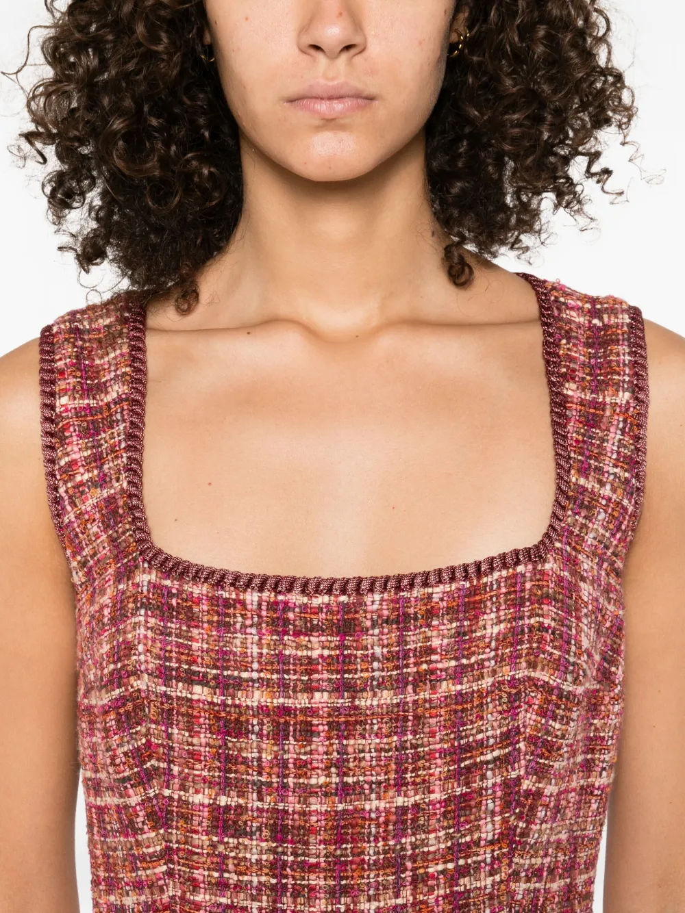 Розовый квадратный вырез без рукавов разноцветный твид прямой подол