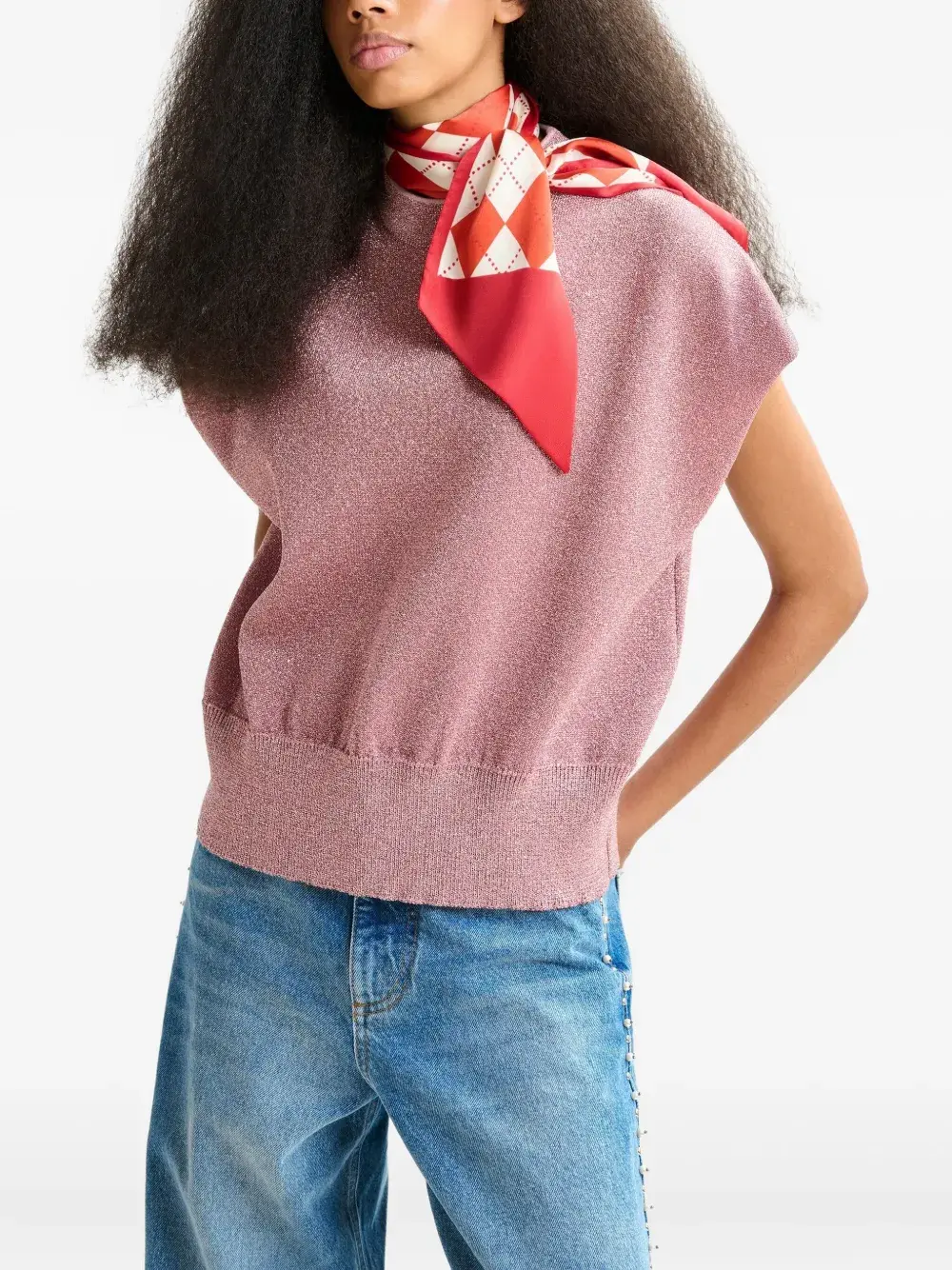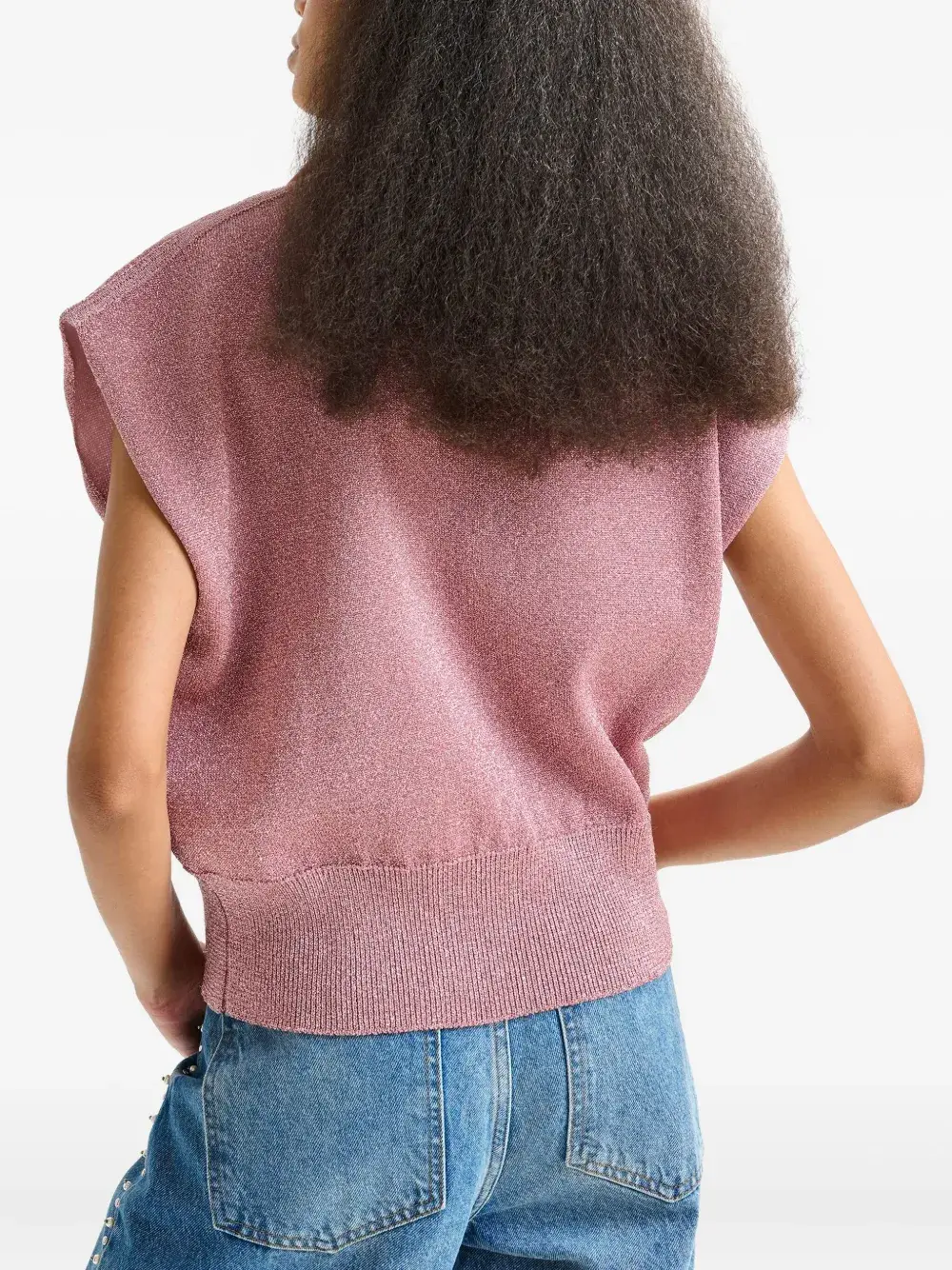 Воротник-стойка без рукавов с розовой ребристой отделкой