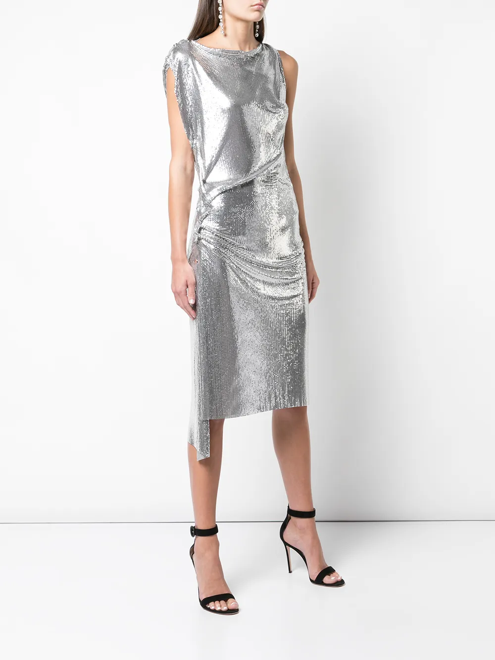 Платье миди с драпировкой Rabanne, серебяный