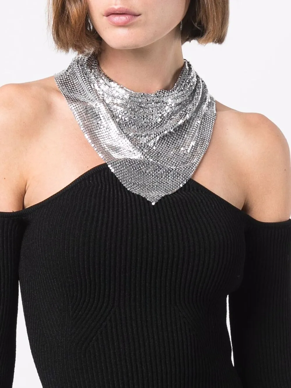 Сетчатое колье от Paco Rabanne. Потайная застежка и драпировка.