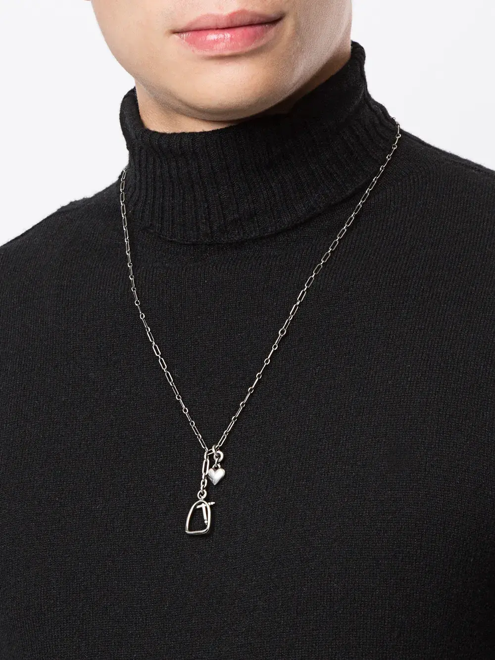 Квадратная цепь, подвеска-крест и подвеска в форме сердца.