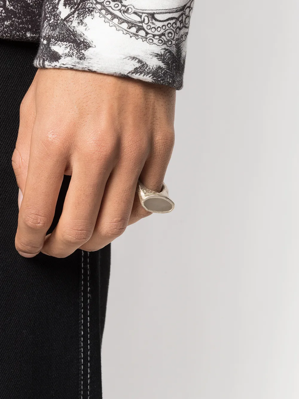 Эффект потертости, вставки из кварца и кольцо-печатка.