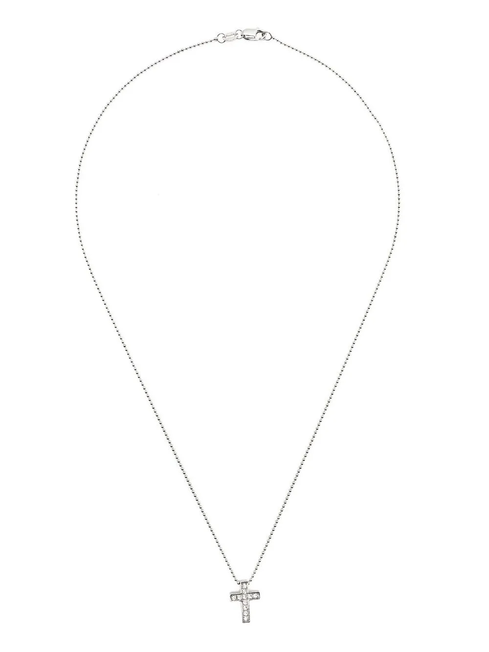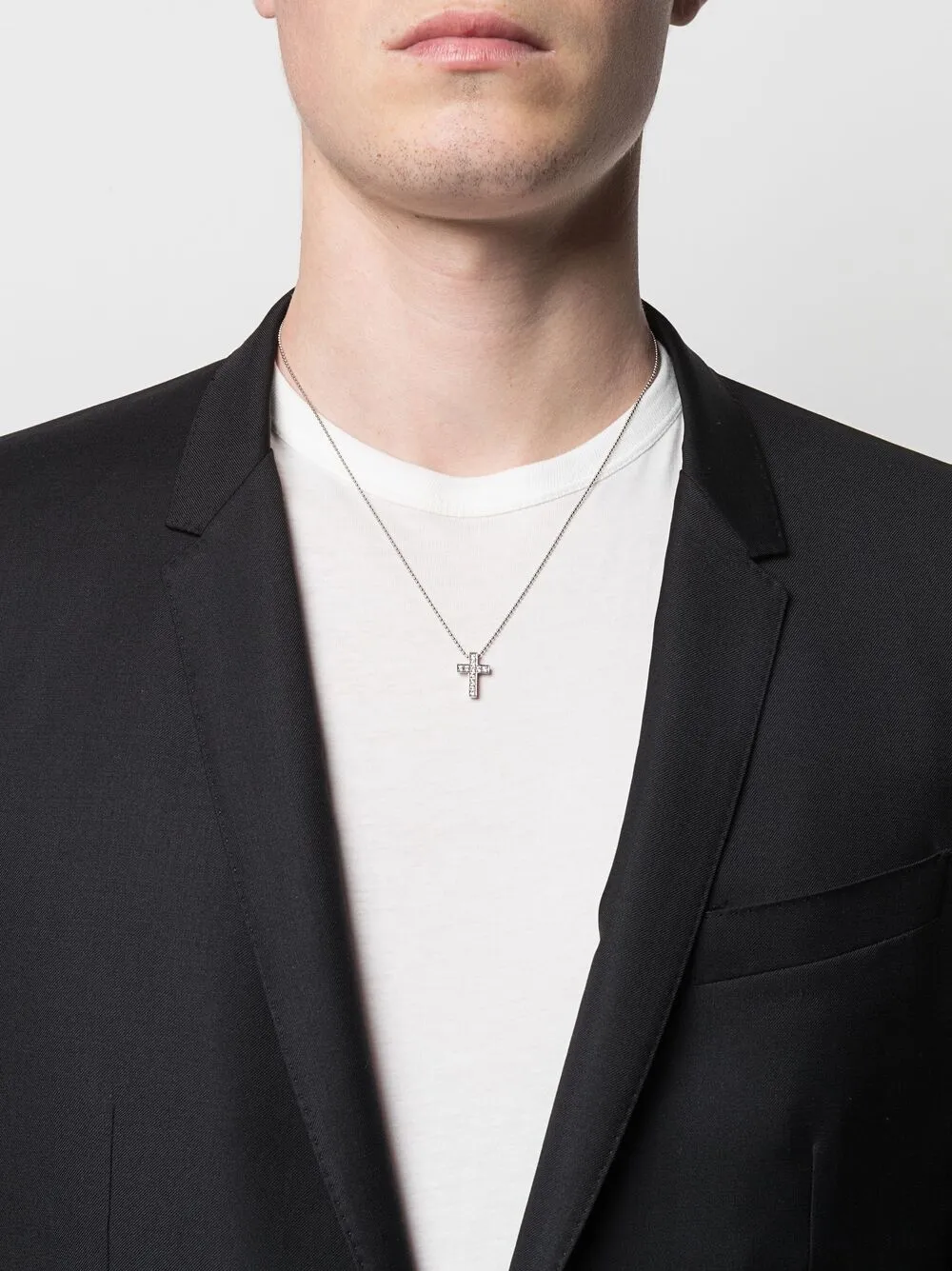 Декор из кристаллов, подвеска-крест, цепь шарикового плетения и застежка-карабин. Цвет: серебристый.