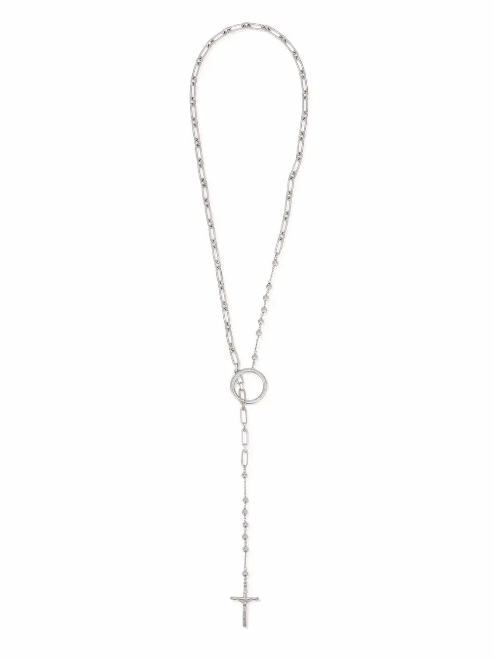 Канатная цепь, подвеска-крест и модель без застежки. Цвет: серебристый.