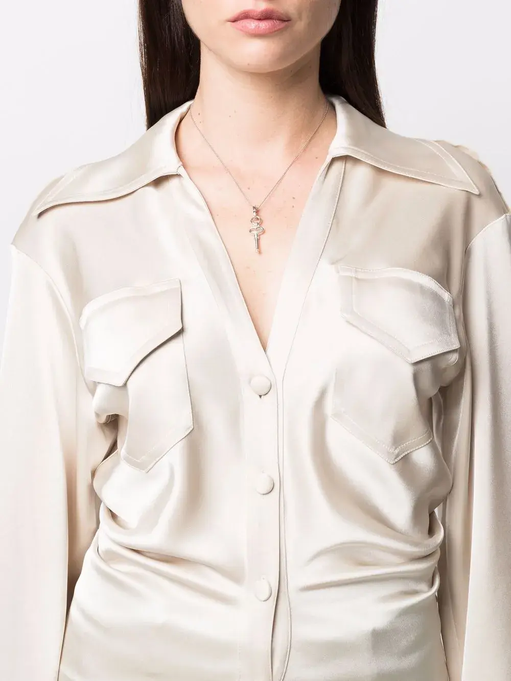 Покрытие из серебра, глянцевая фактура и застежка на зажиме.